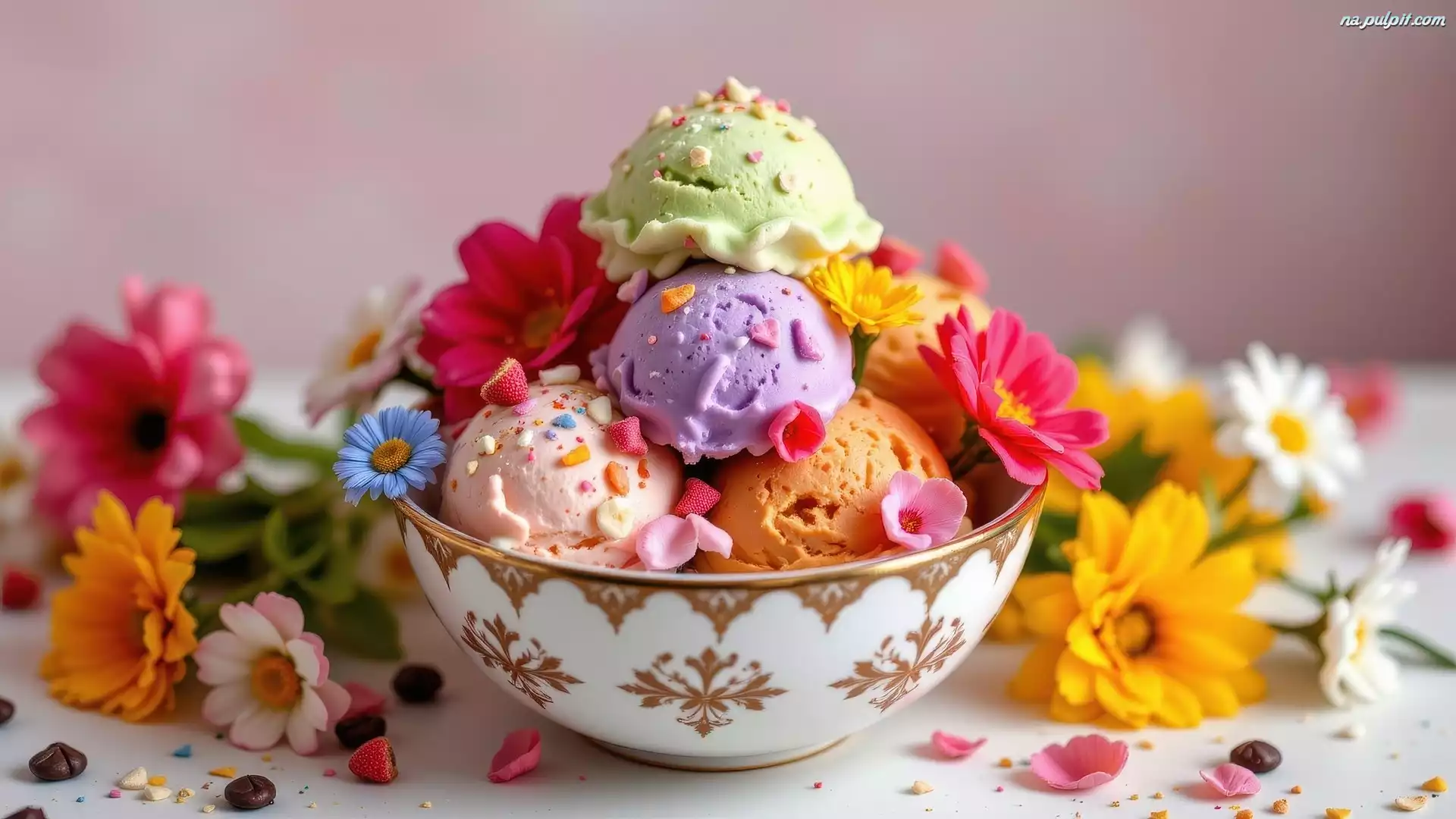 Kolorowe, Gałki, Lody, Miska, Wielosmakowe, Kwiaty Na Pulpit