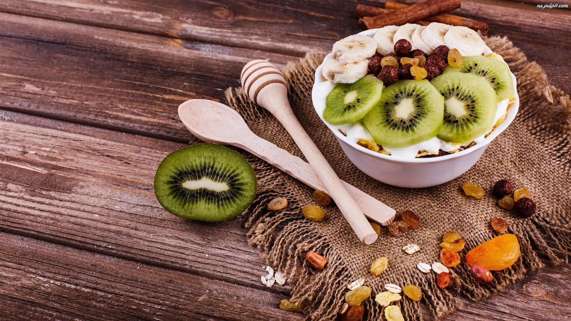 Miska, Rodzynki, Deski, Orzechy, Musli, Kiwi Na Pulpit