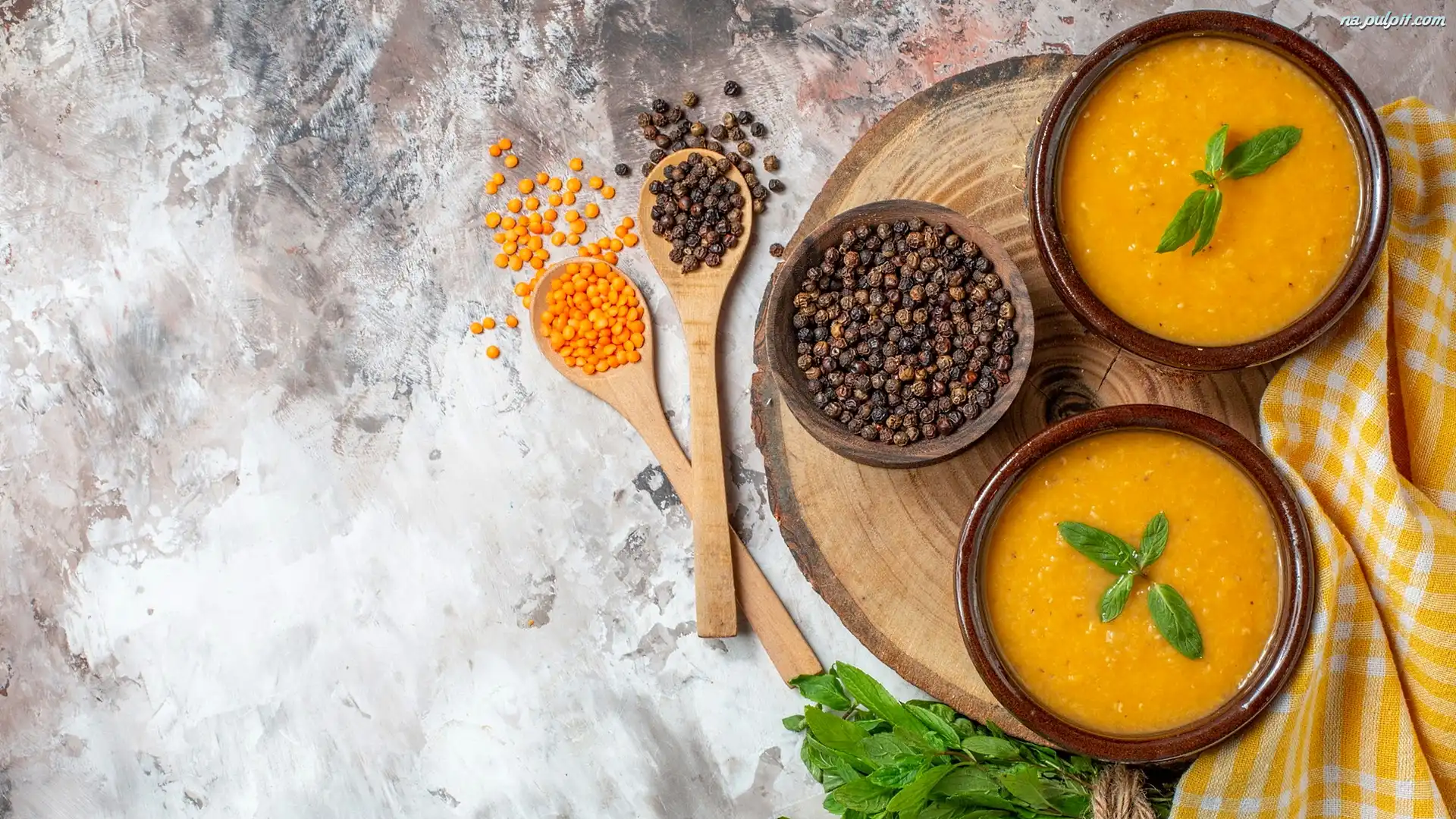 Miski, Ścierka, Łyżki, Soczewica, Zupa, Drewno
