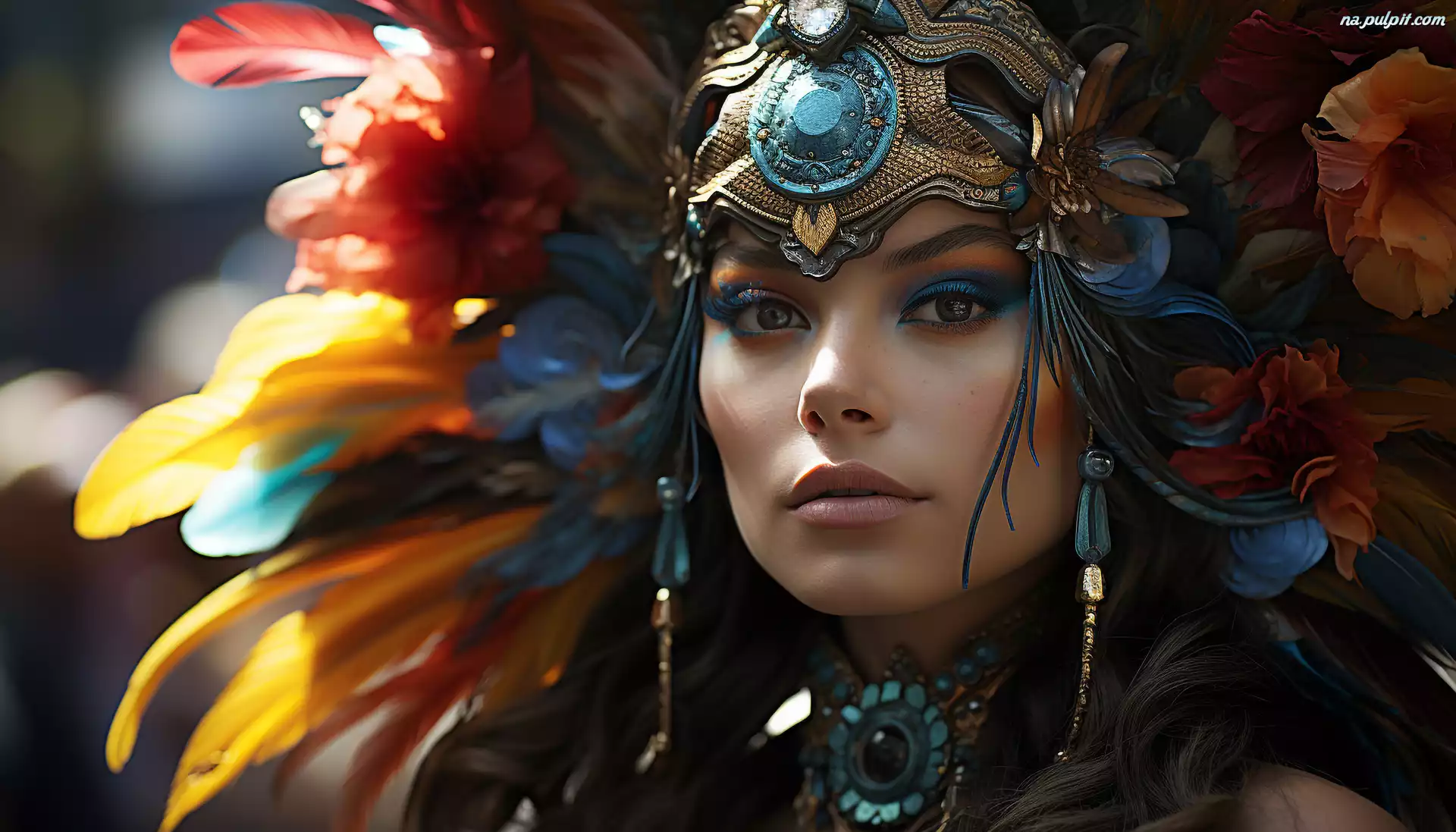 Pióropusz, Młoda, Kobieta, Grafika, Kwiaty Na Pulpit