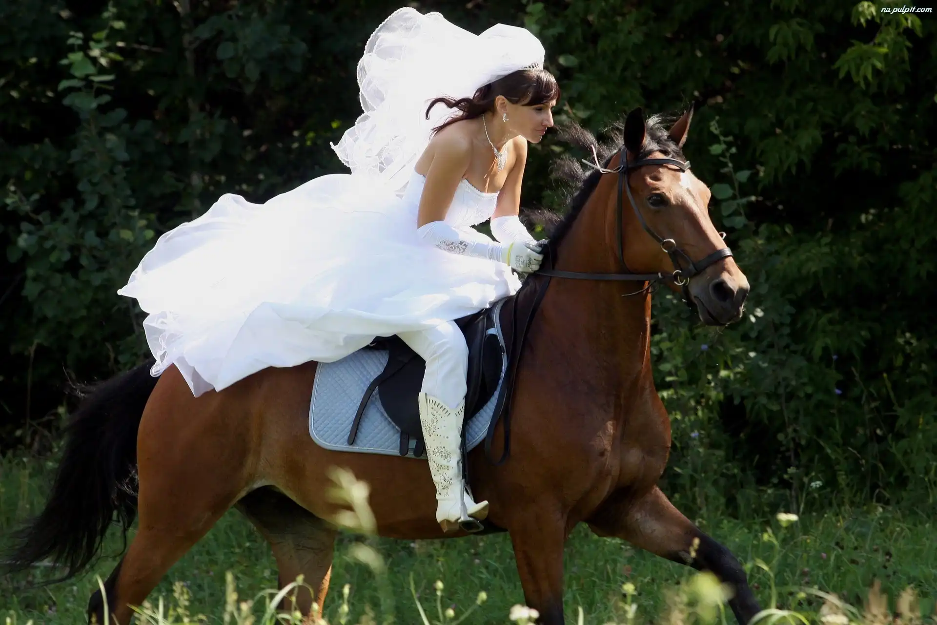 Młoda, Kobieta, Koń, Panna Na Pulpit