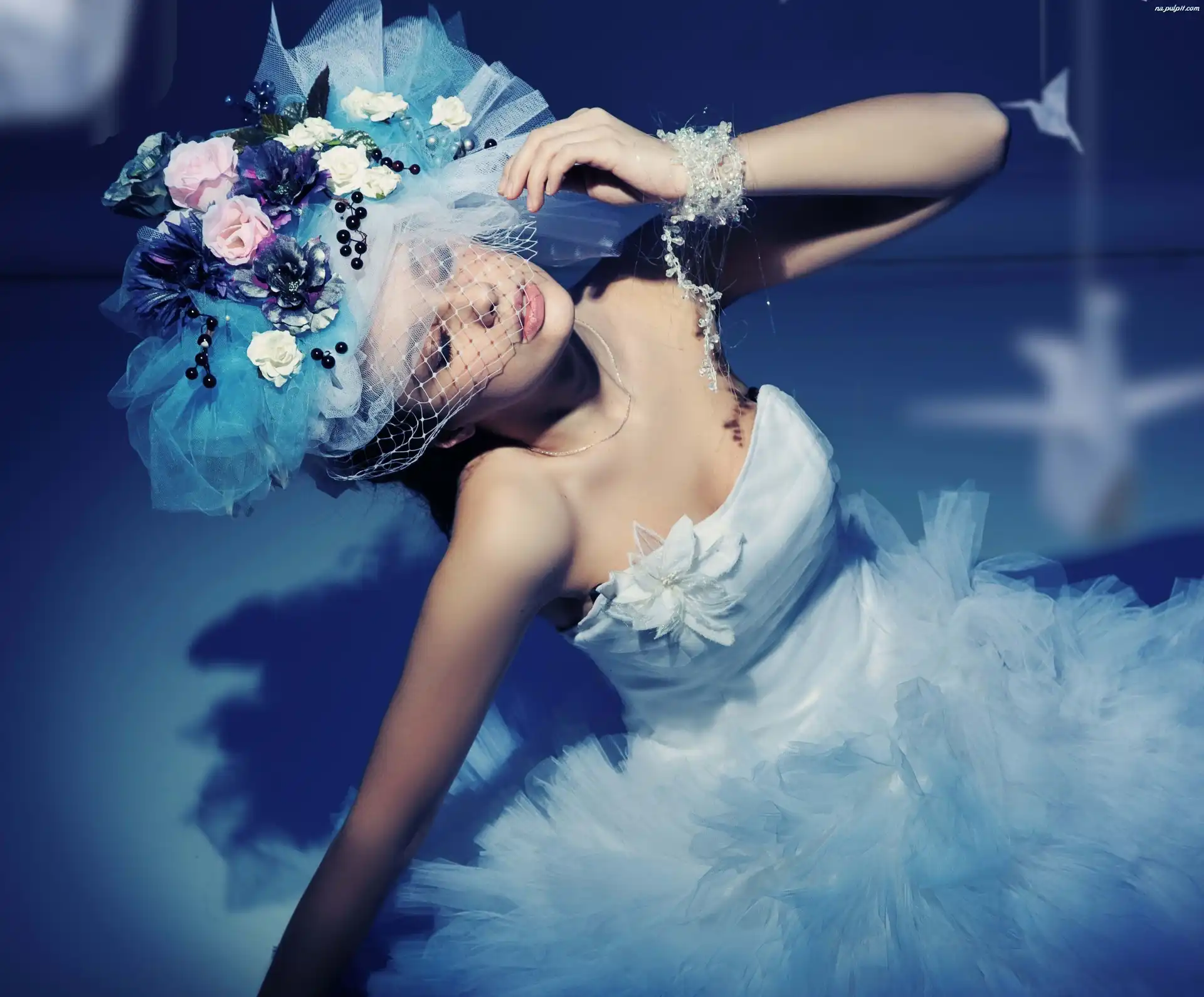 Młoda, Tiul, Kwiaty, Suknia, Panna, Ślubna