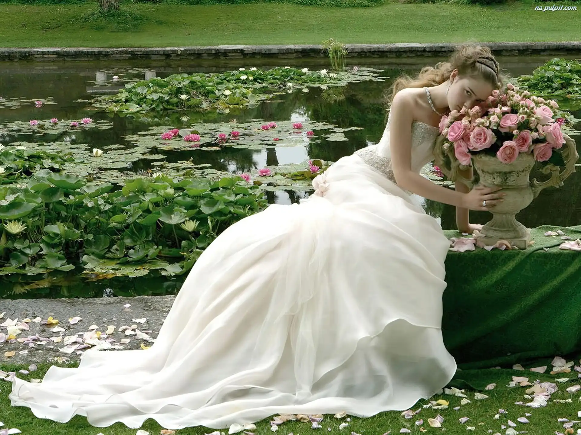 Młoda, Lilie, Wodne, Róże, Panna, Staw Na Pulpit