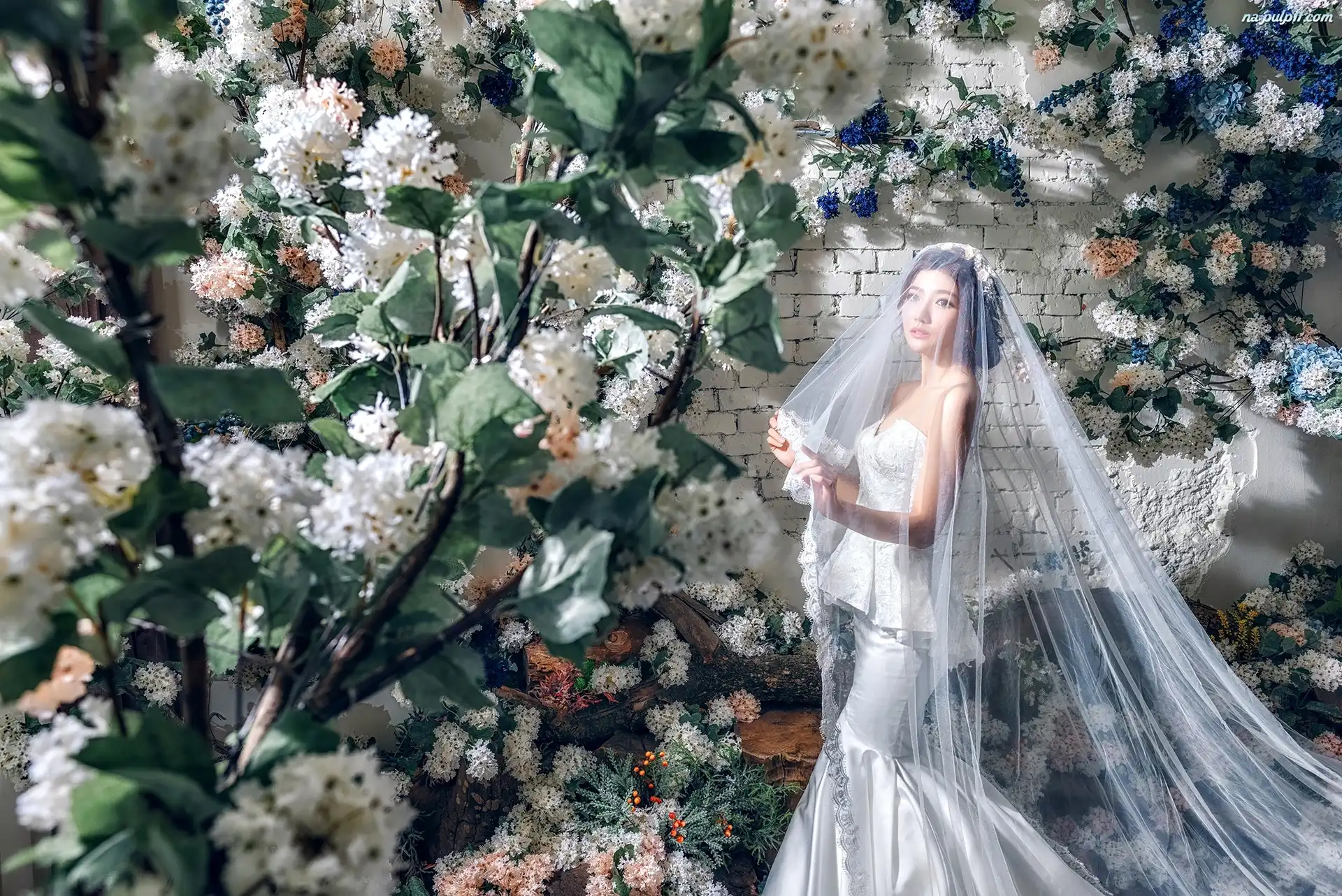 Panna młoda, Kwiaty, Ślub, Suknia ślubna, Kobieta, Welon Na Pulpit