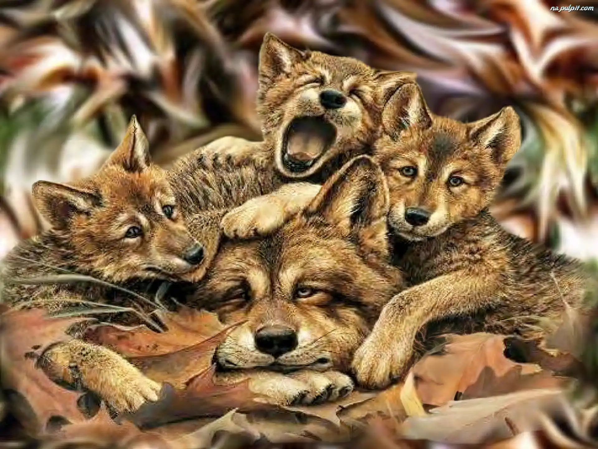 Młode, Wilk, Mama, Trzy Na Pulpit