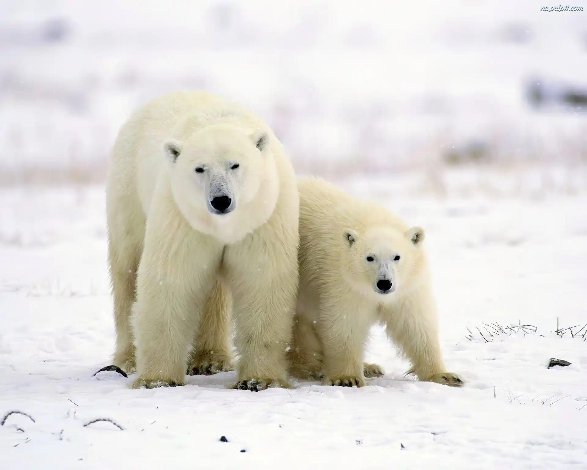 Młode, Polarne, Niedźwiedzie, Mama Na Pulpit