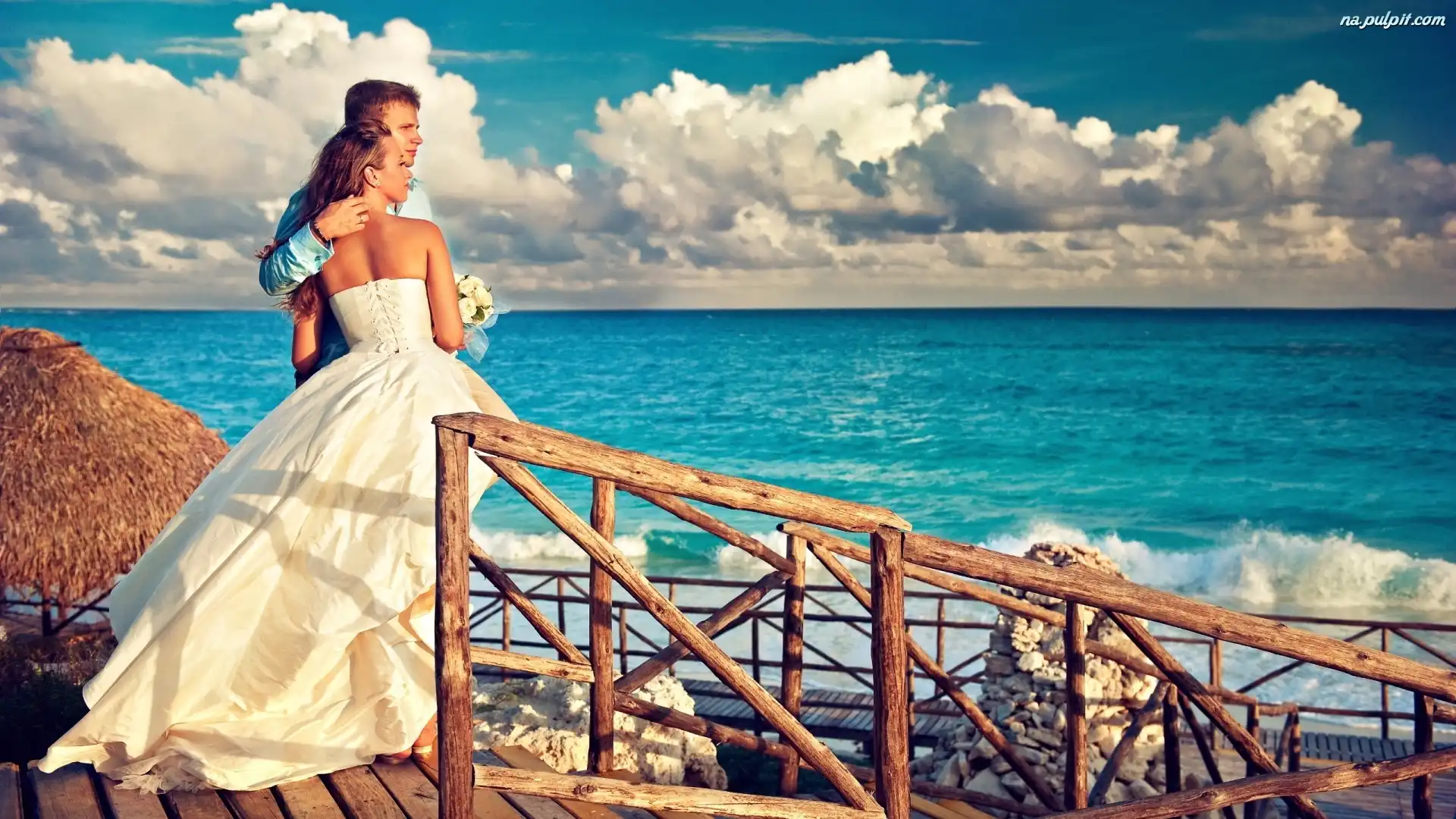 Młodych, Niebo, Obłoki, Molo, Para, Morze Na Pulpit
