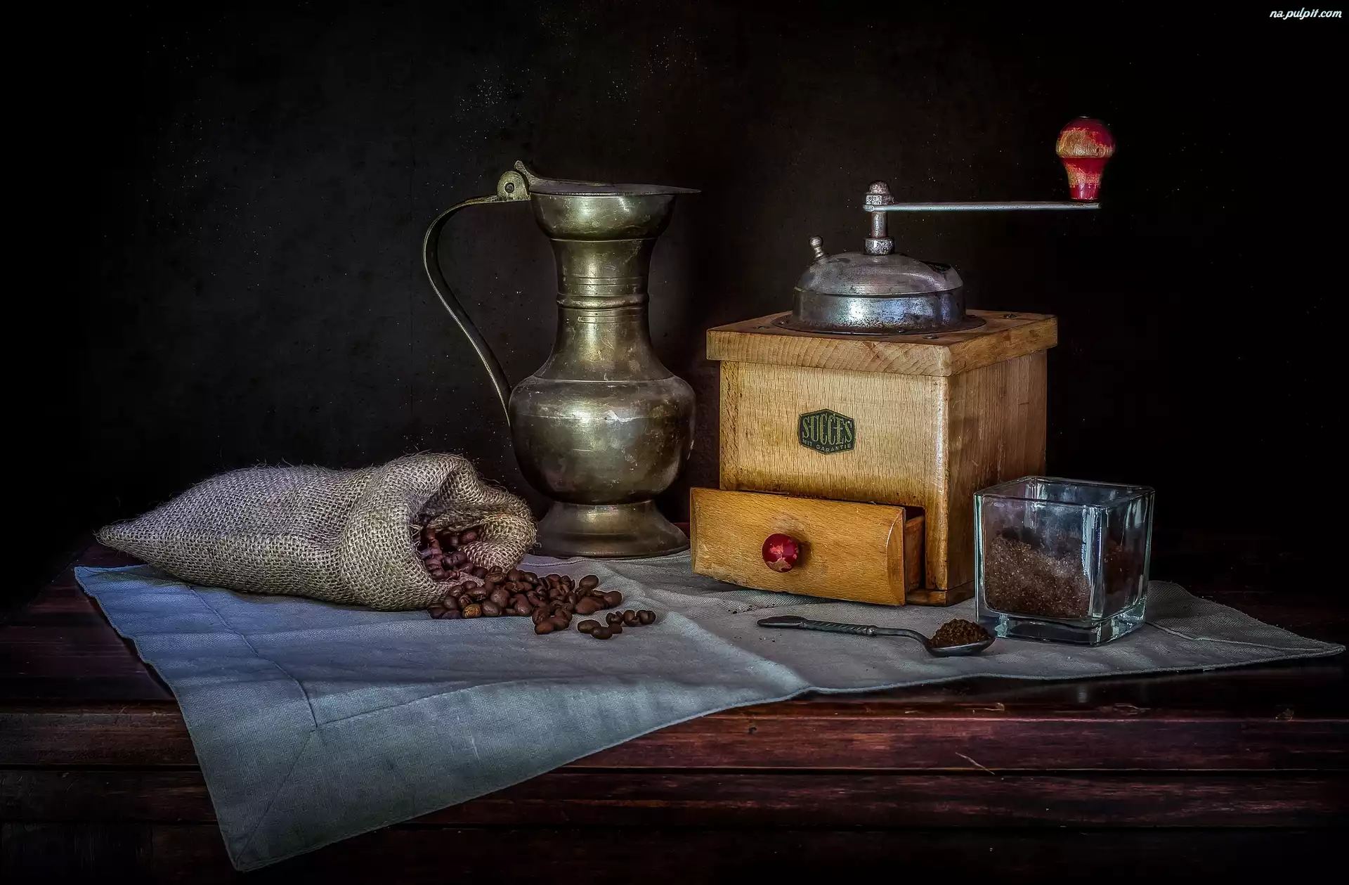 Łyżeczka, Kawa, Woreczek, Młynek, Dzbanek Na Pulpit