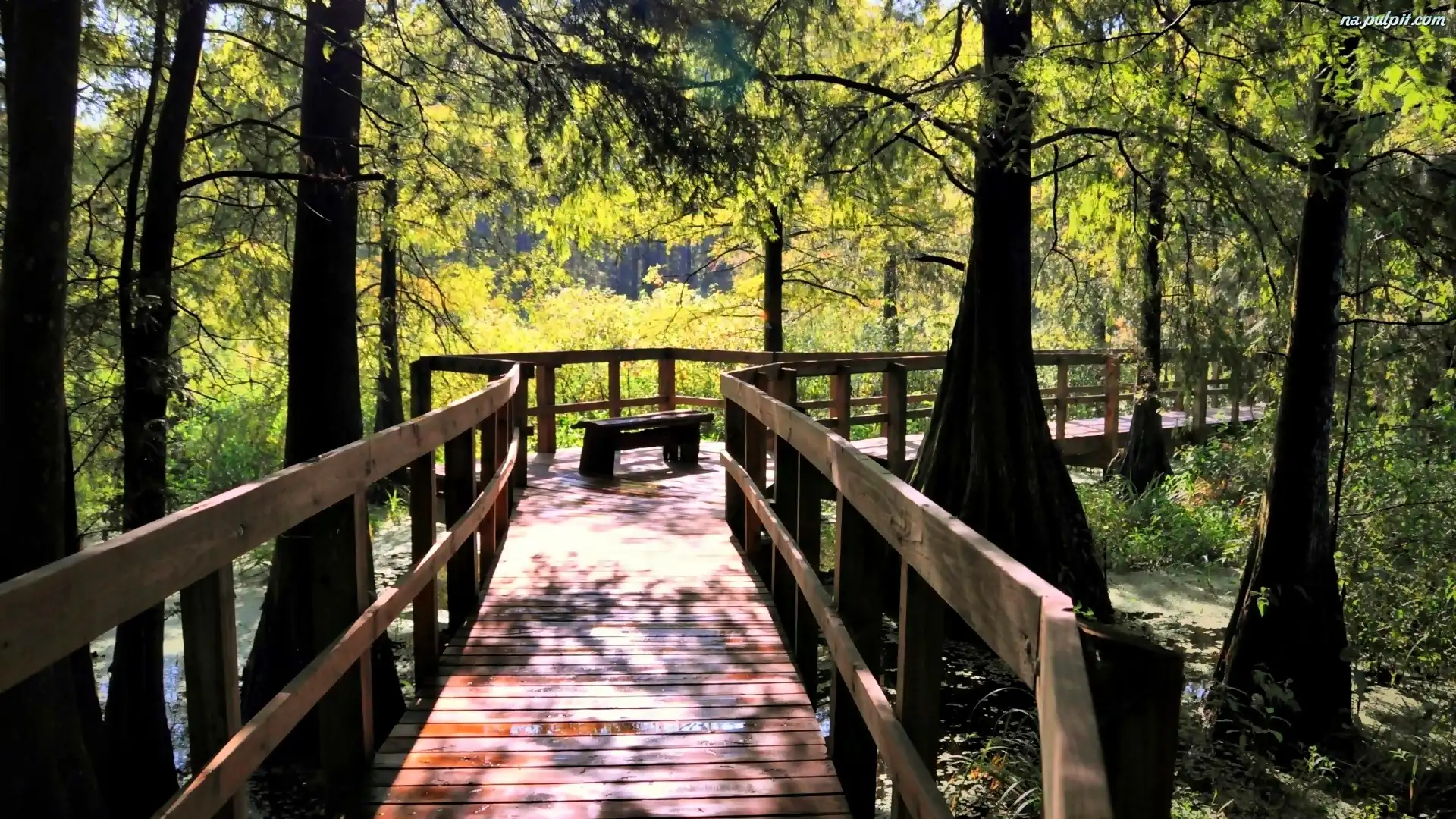 Moczary, Przebijające, Światło, Drewniany, Las, Most Na Pulpit