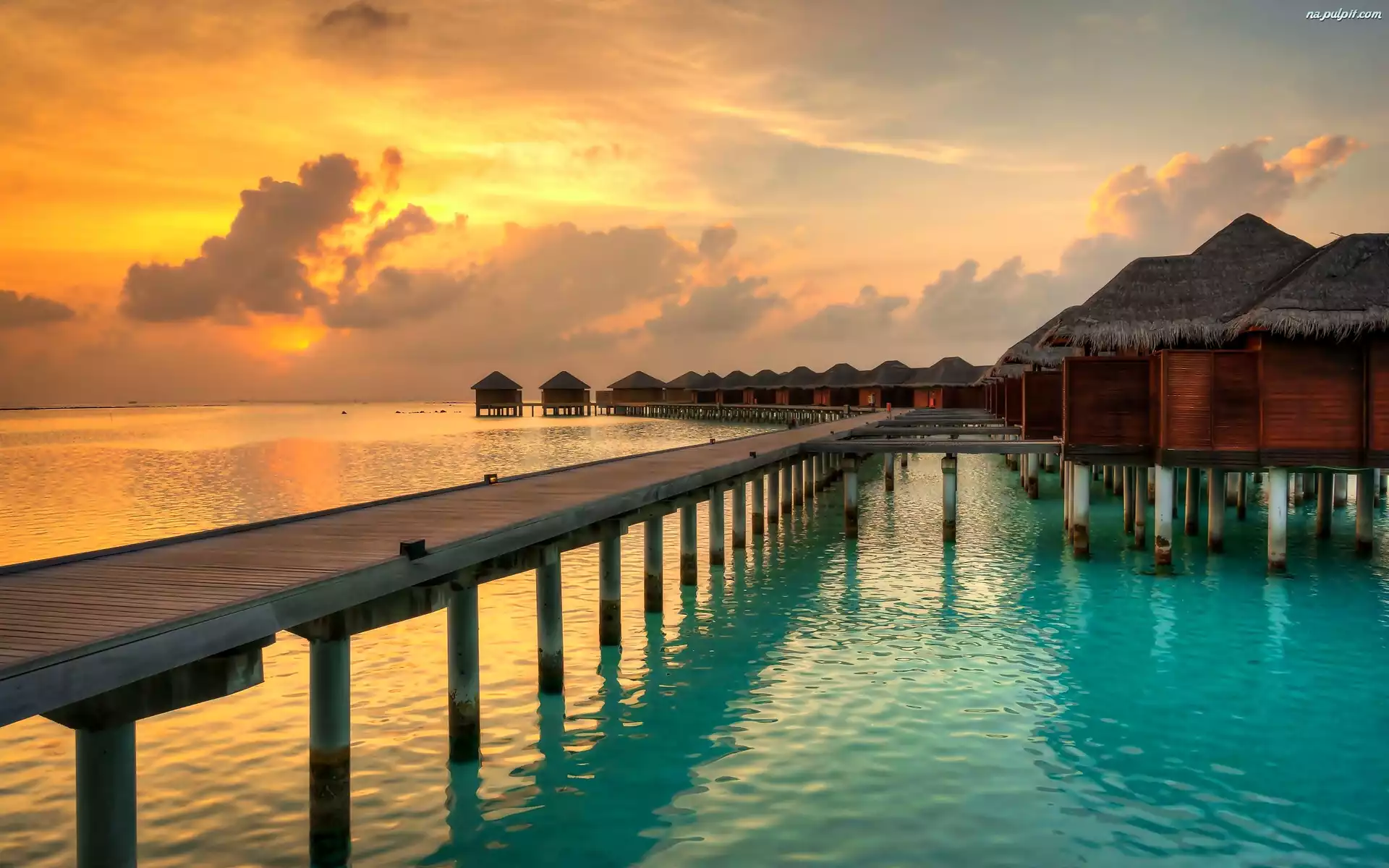Molo, Domki, Kurort, Zachód, Morze, Słońca Na Pulpit