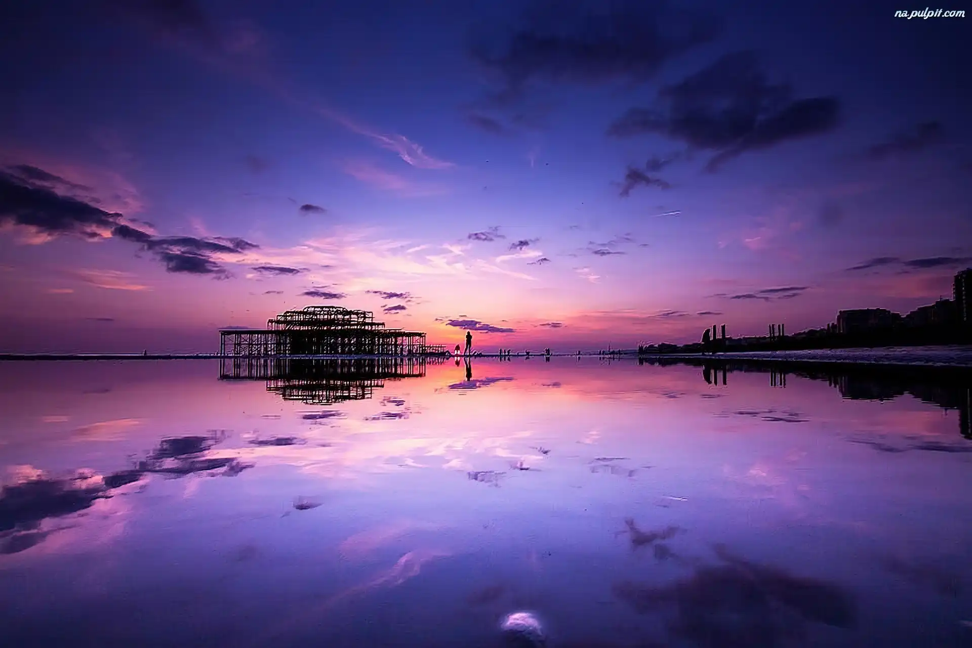 Molo, Zachód Słońca, Morze, Chmury Na Pulpit