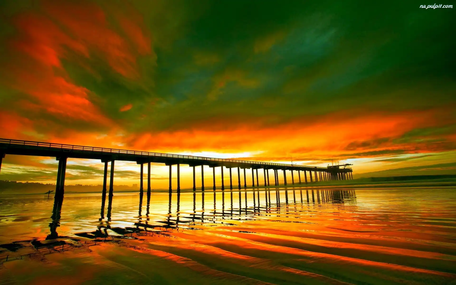 Molo, Zachód, Morze, Słońca Na Pulpit