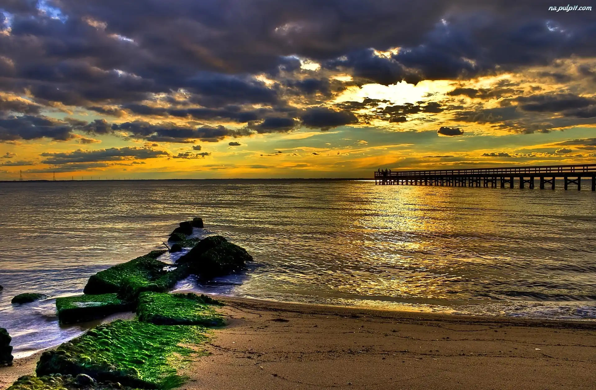 Molo, Słońca, Zachód, Morze, Plaża Na Pulpit