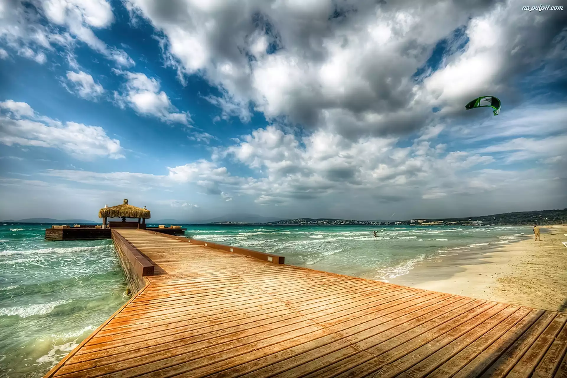 Molo, Morze, Plaża, Chmury Na Pulpit