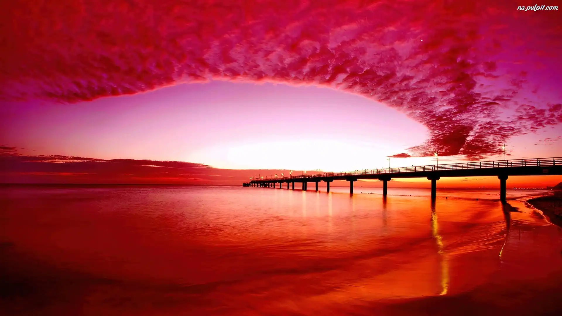 Molo, Chmury, Różowe, Morze Na Pulpit