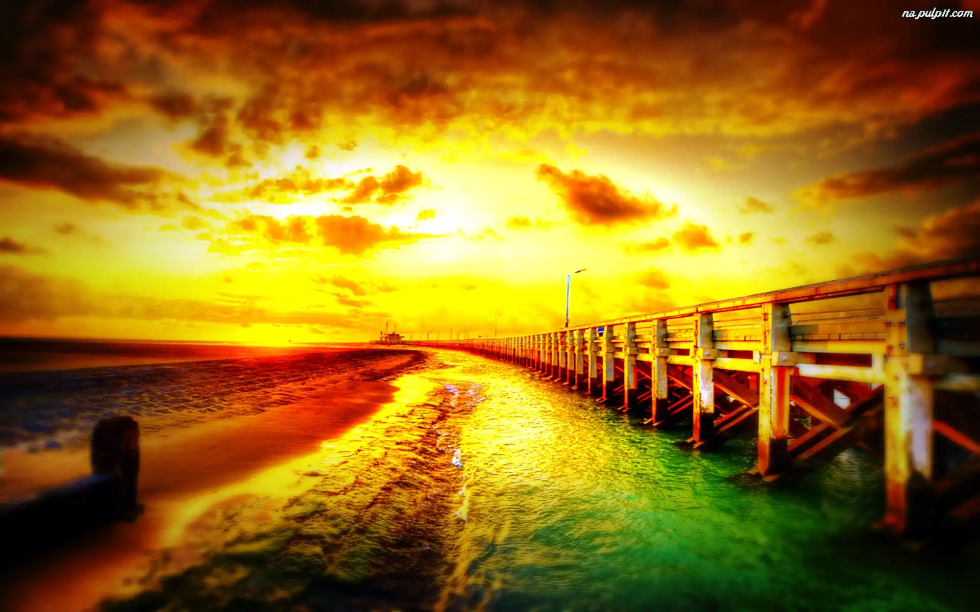 Molo, Słońca, Zachód, Morze Na Pulpit