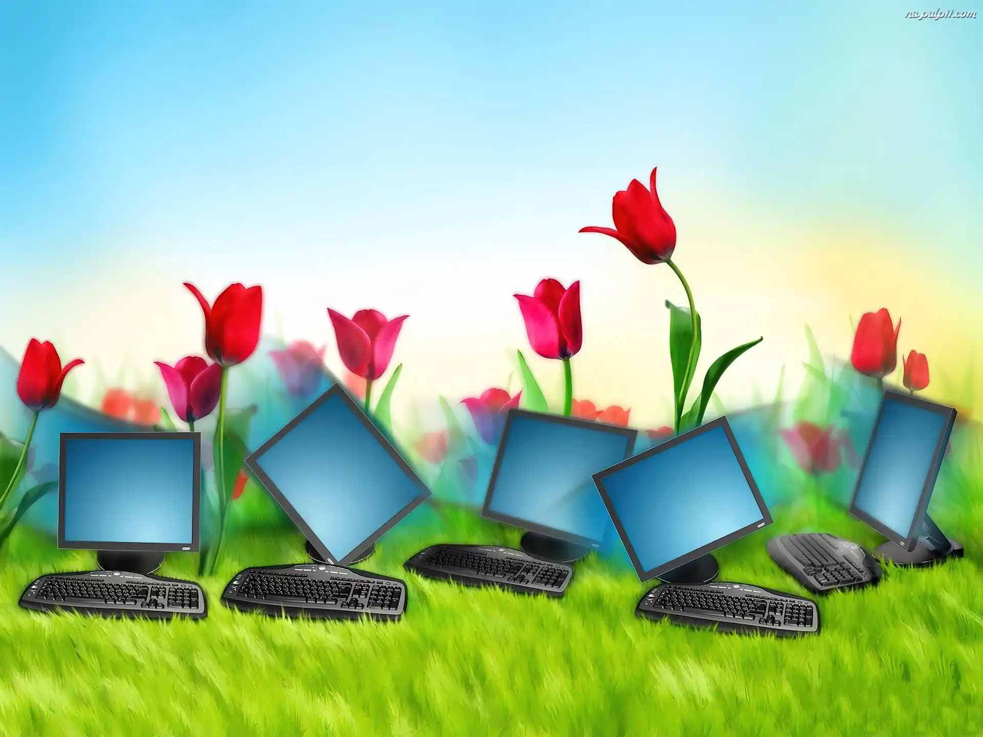 Tulipany, Monitory, Klawiatury Na Pulpit