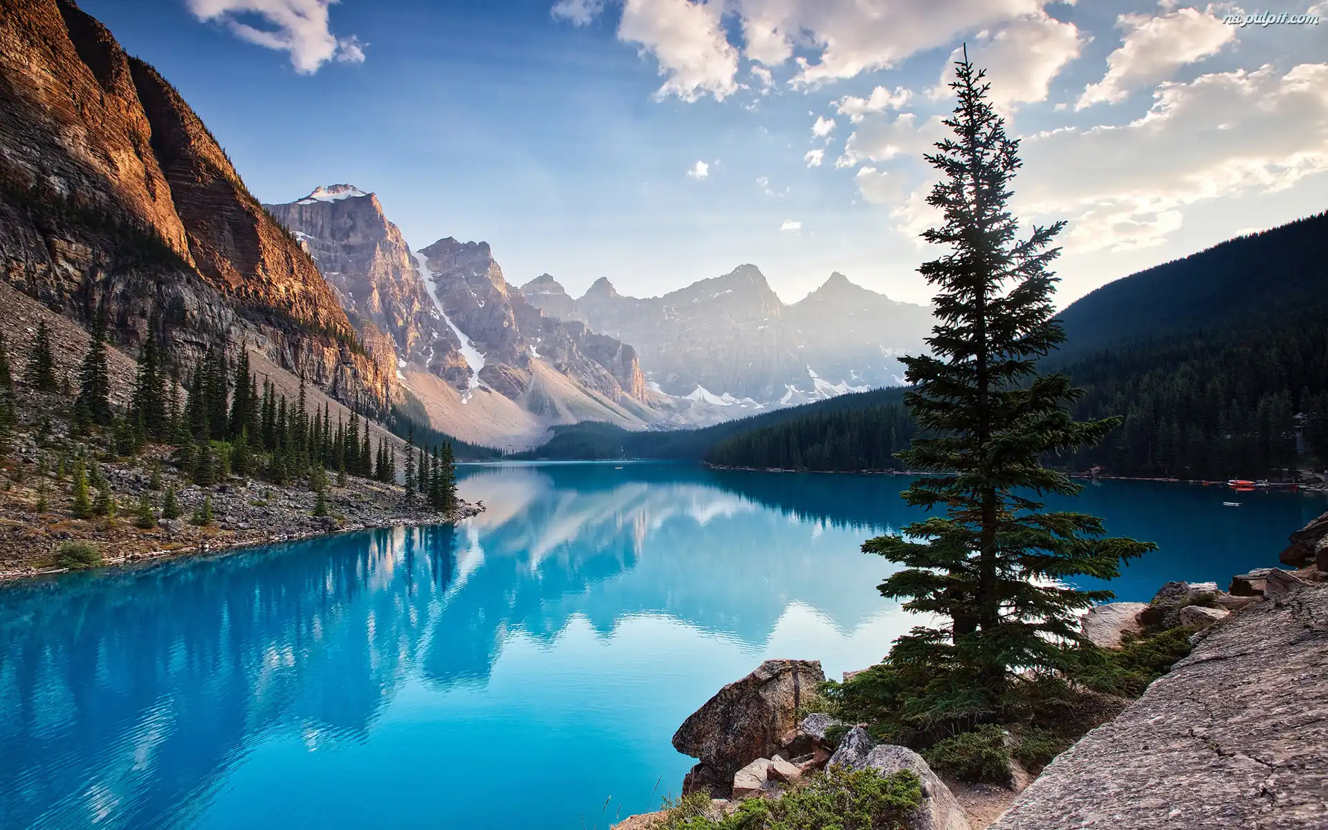 Prowincja Alberta, Drzewa, Góry, Park Narodowy Banff, Kanada, Jezioro Moraine Na Pulpit