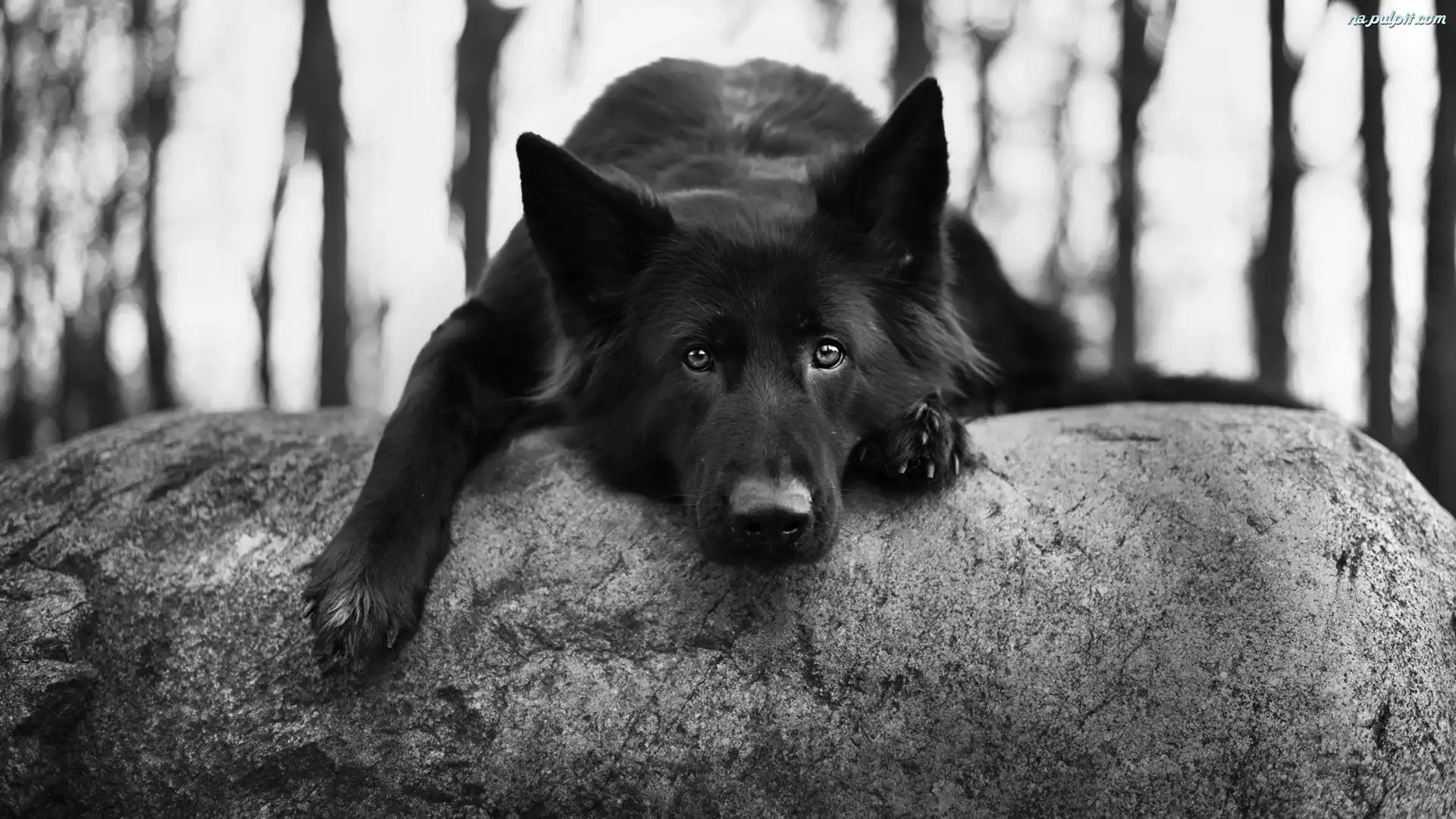 Drzewa, Mordka, Czarny owczarek niemiecki, Pies, Głaz Na Pulpit