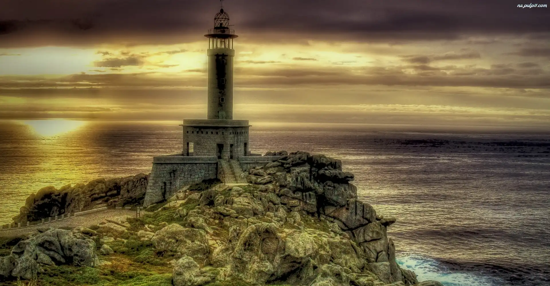 Morska, Zachód, Słonca, Morze, Latarnia, Skała Na Pulpit