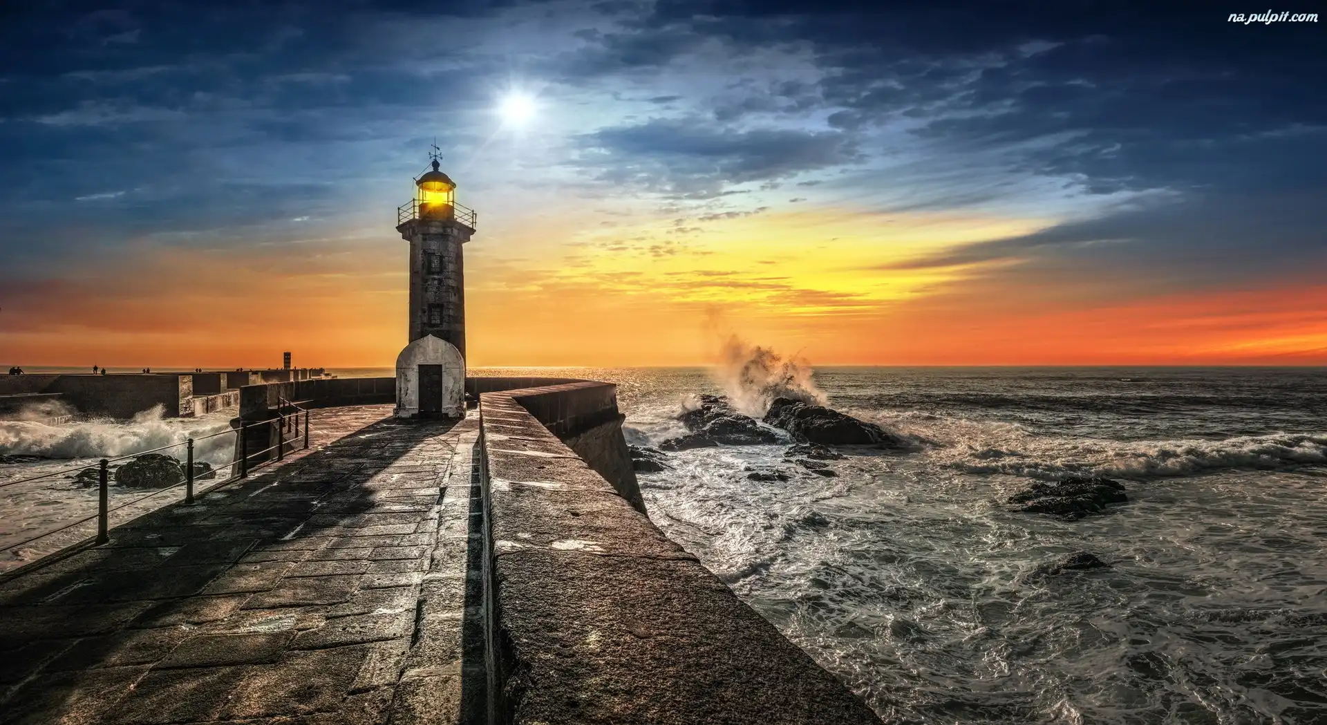 Morska, Słońca, Zachód, Morze, Latarnia Na Pulpit