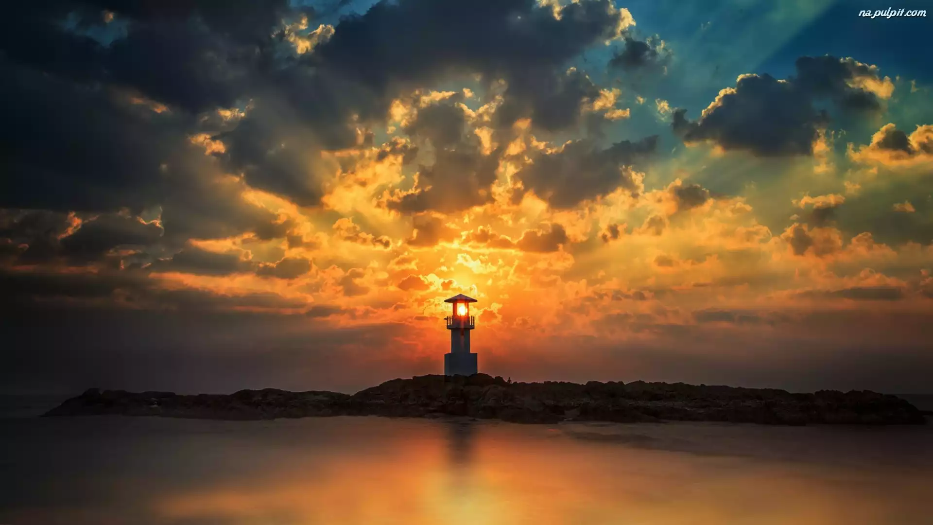 Słońca, Morska, Promienie, Morze, Wyspa, Latarnia, Chmury Na Pulpit