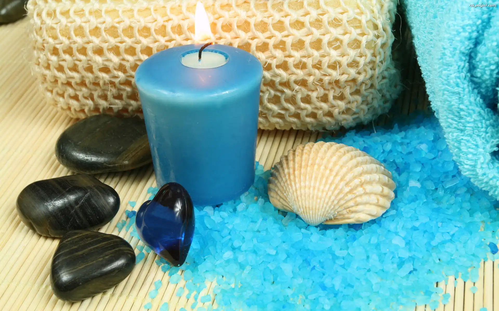 Spa, Morska, Ręczniki, Muszelka, Kompozycja, Kamienie, Sól, Świeca