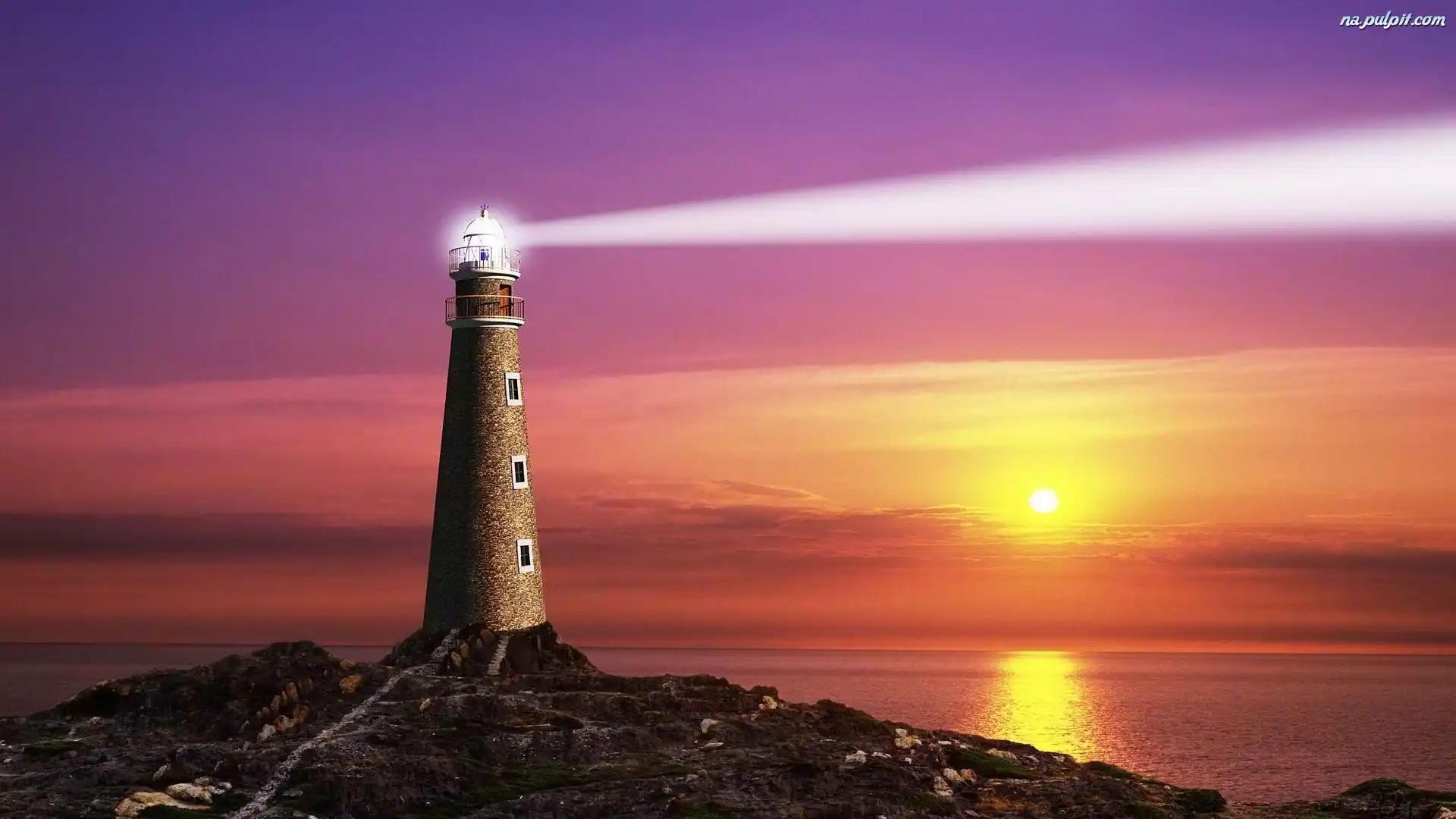 Morska, Słońca, Zachód, Latarnia Na Pulpit
