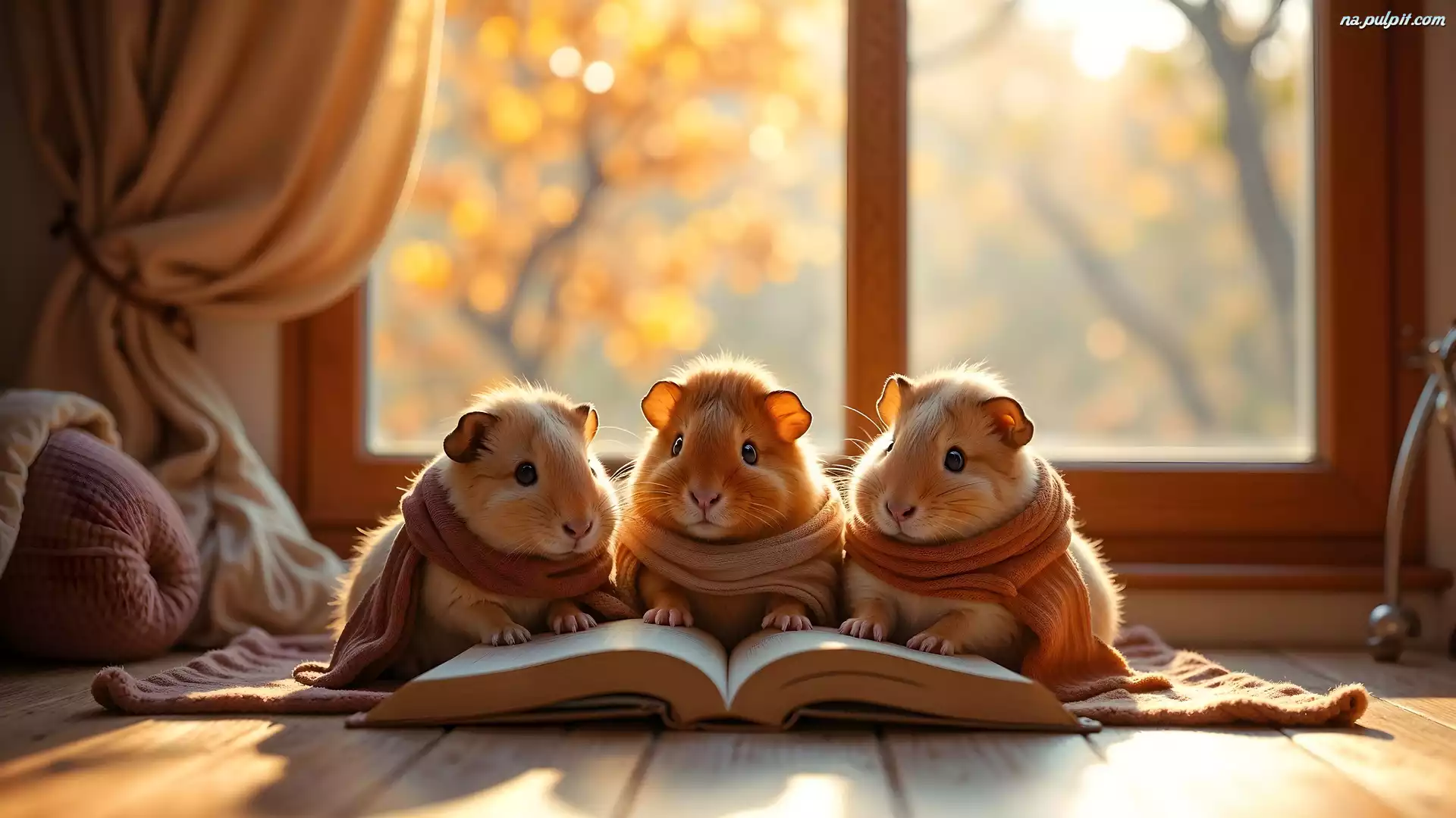 Podłoga, Trzy, Świnki morskie, Okno, Książka