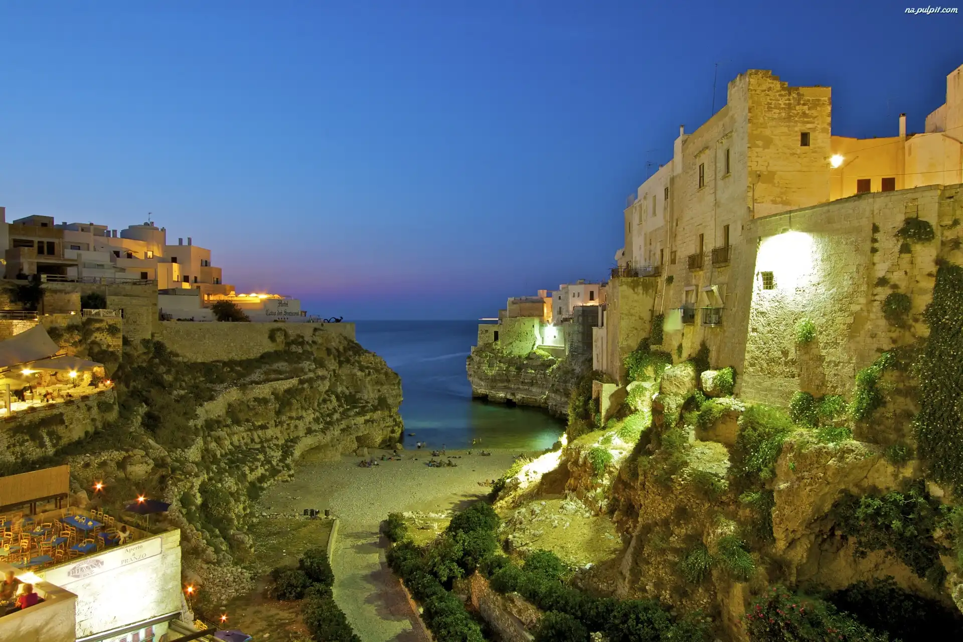 Morze, Miasto, Włochy, Polignano a Mare Na Pulpit
