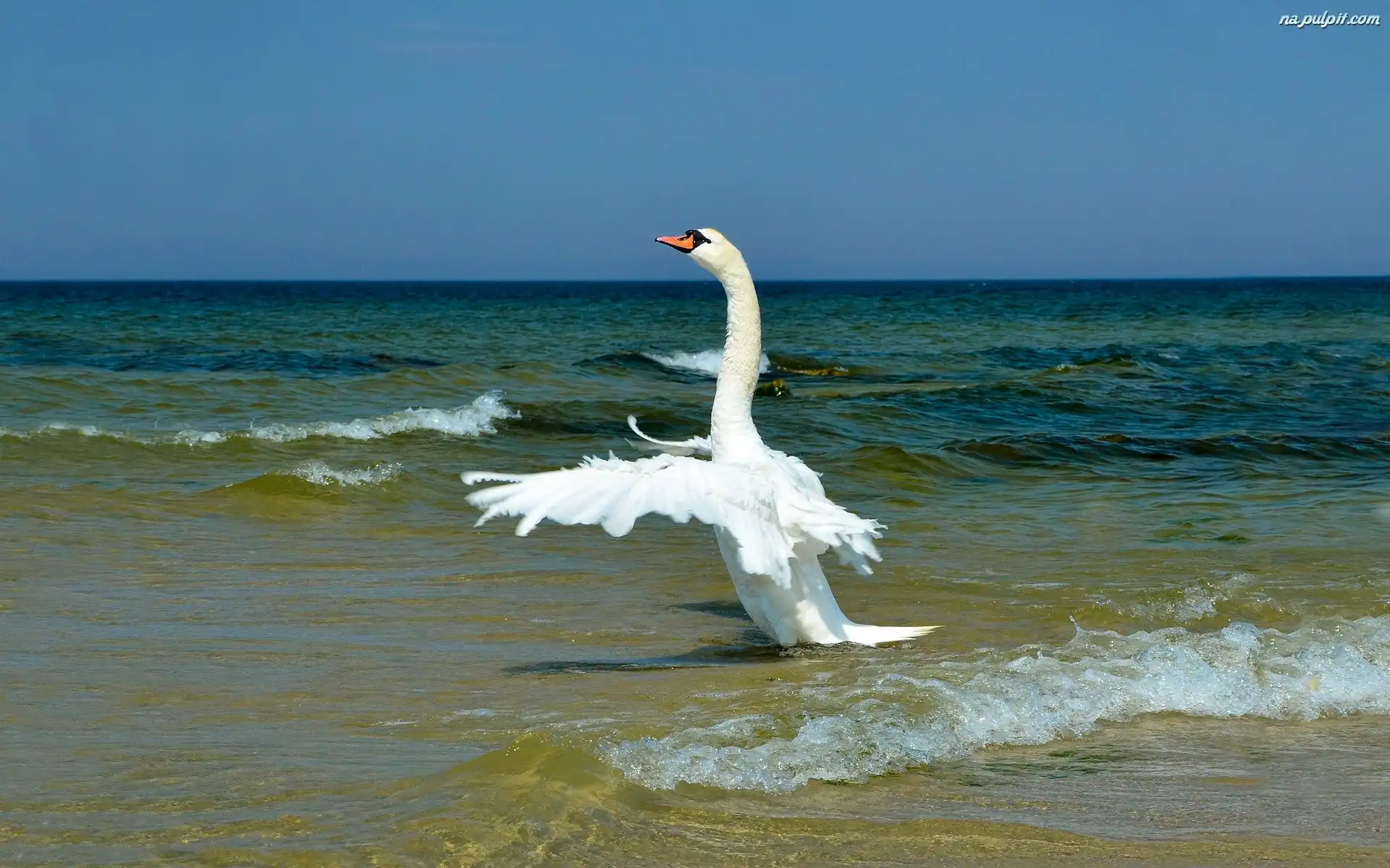 Łabędź, Morze, Plaża Na Pulpit