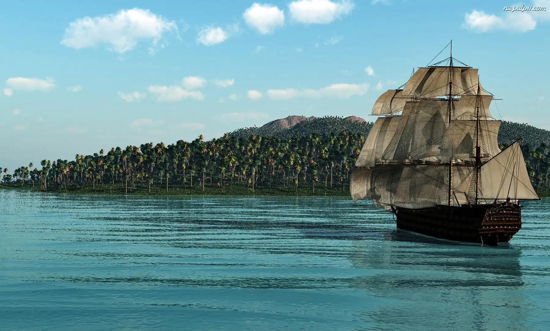 Żaglowiec, Morze, Wyspa Na Pulpit