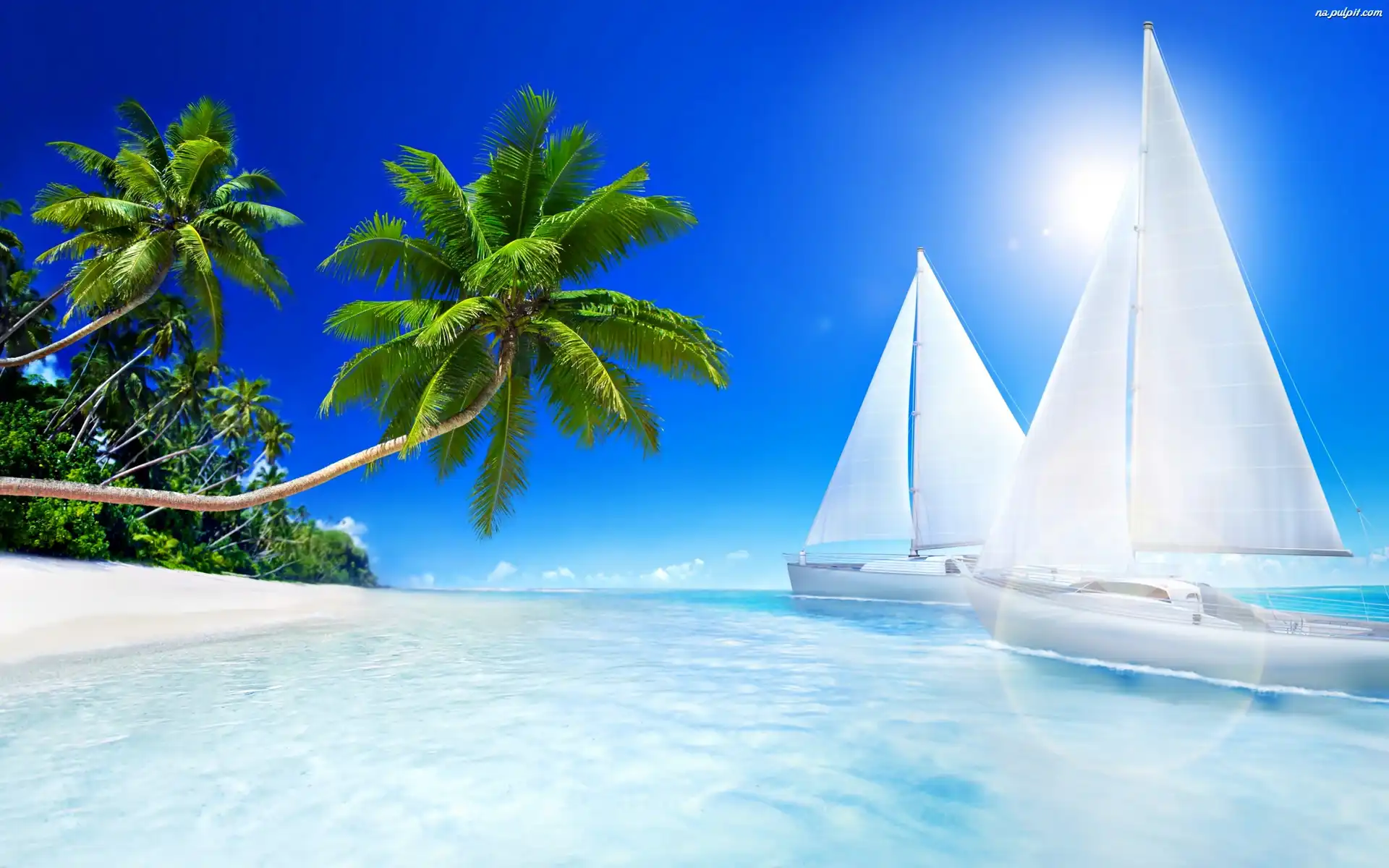 Żaglówki, Morze, Palmy Na Pulpit