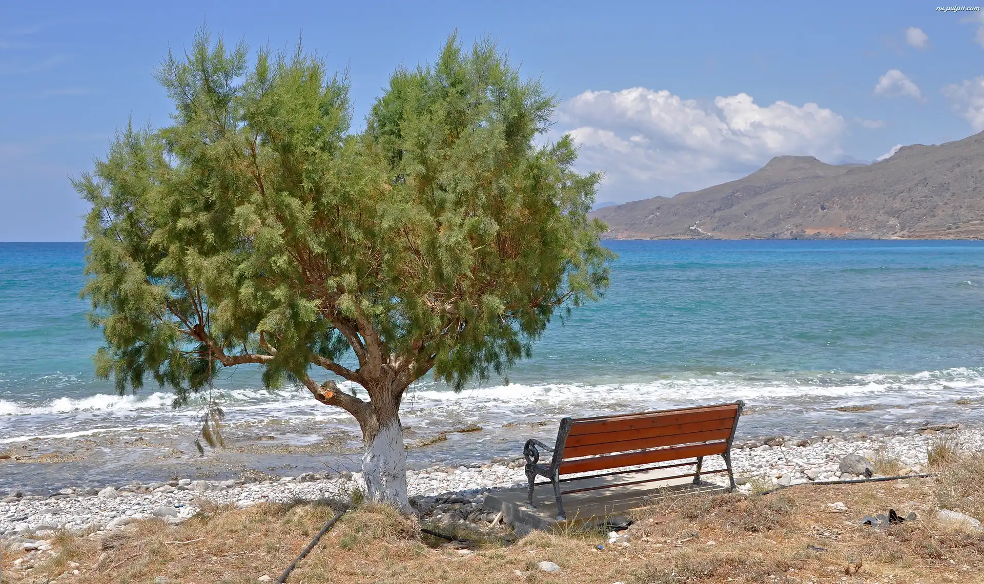 Ławeczka, Morze, Drzewo Na Pulpit