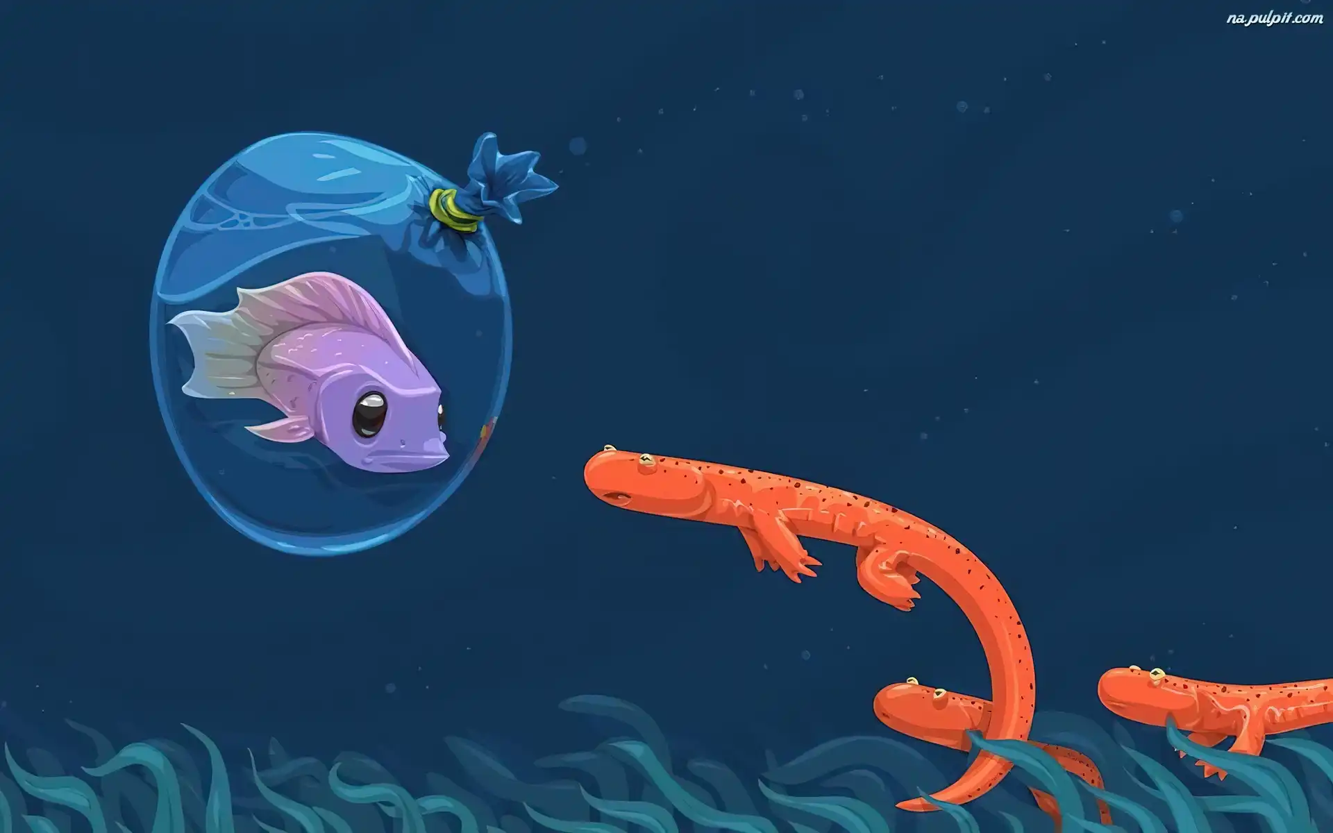 Grafika 3D, Ryby, Morze, Bańka Na Pulpit