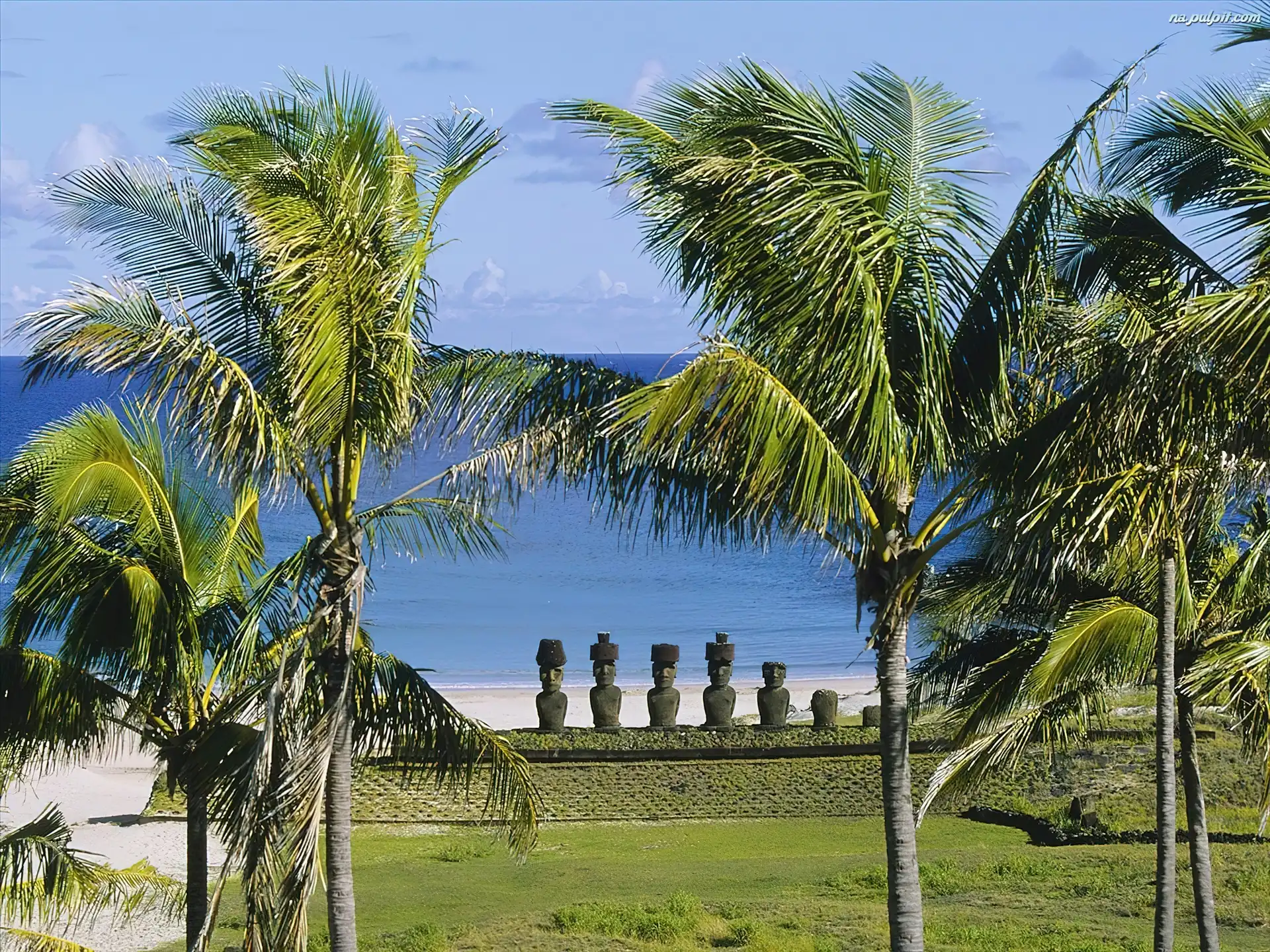 Morze, Palmy, Wyspa Wielkanocna, Chile, Trawa Na Pulpit