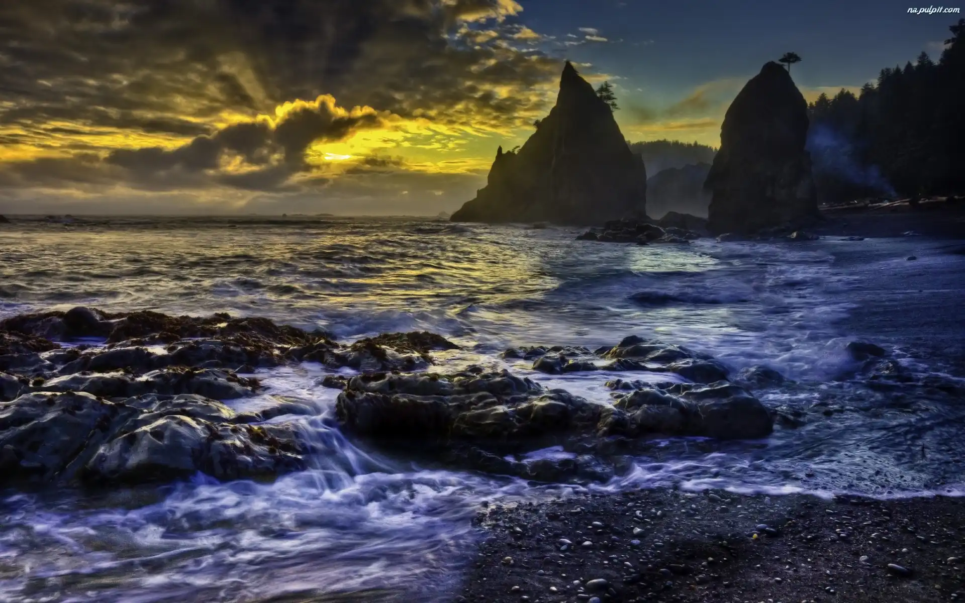 Chmury, Morze, Skały Na Pulpit