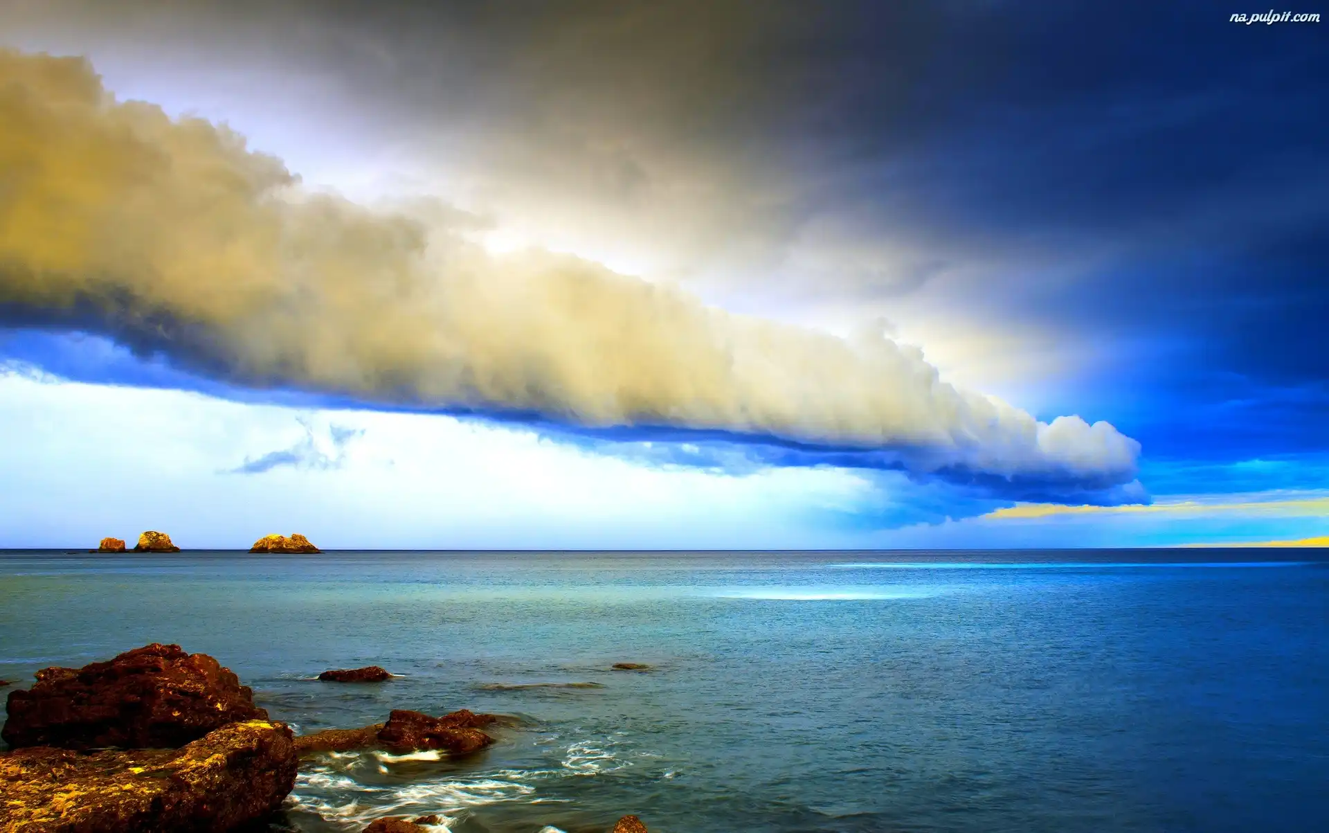 Chmury, Morze, Skały Na Pulpit