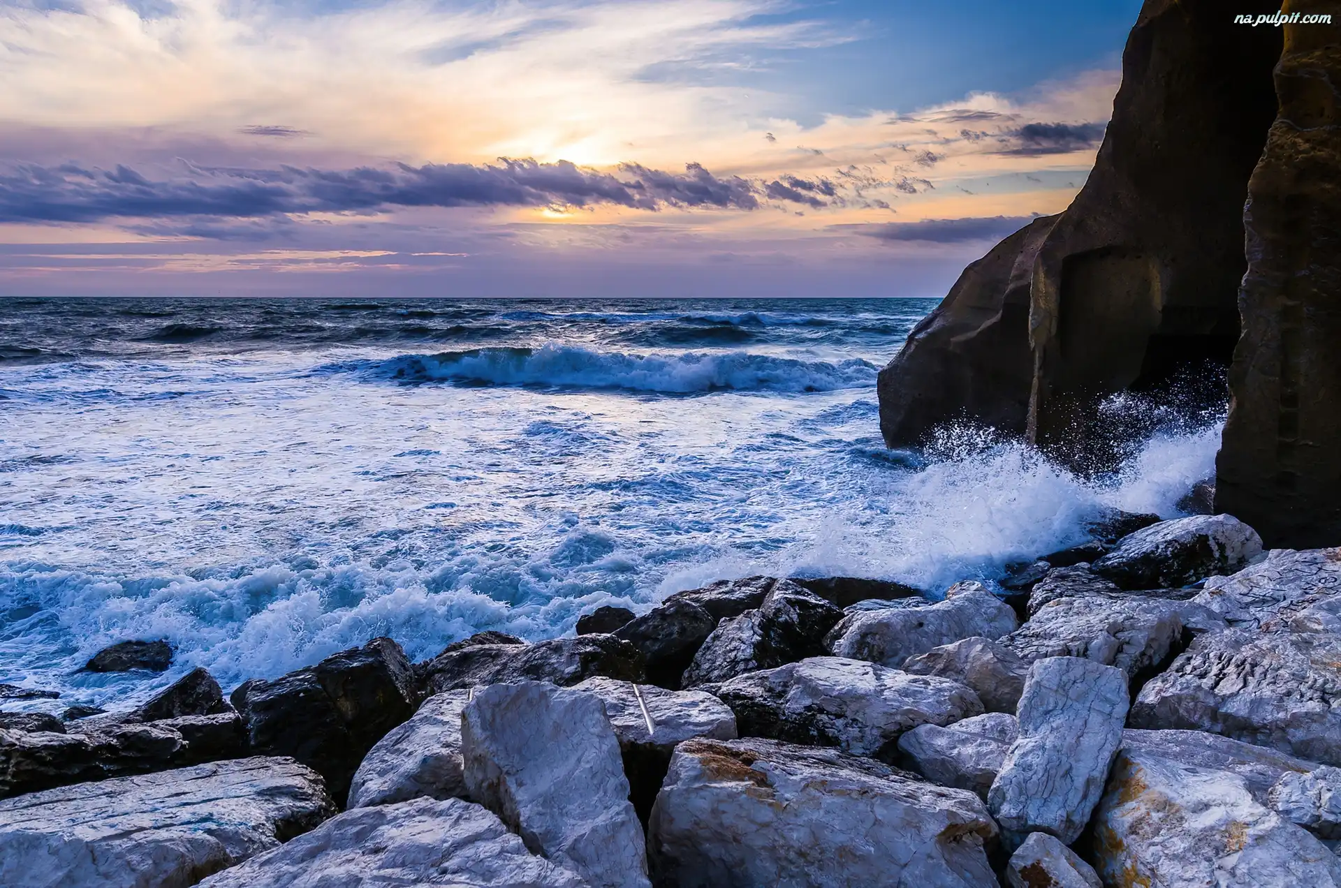 Chmury, Morze, Skały Na Pulpit