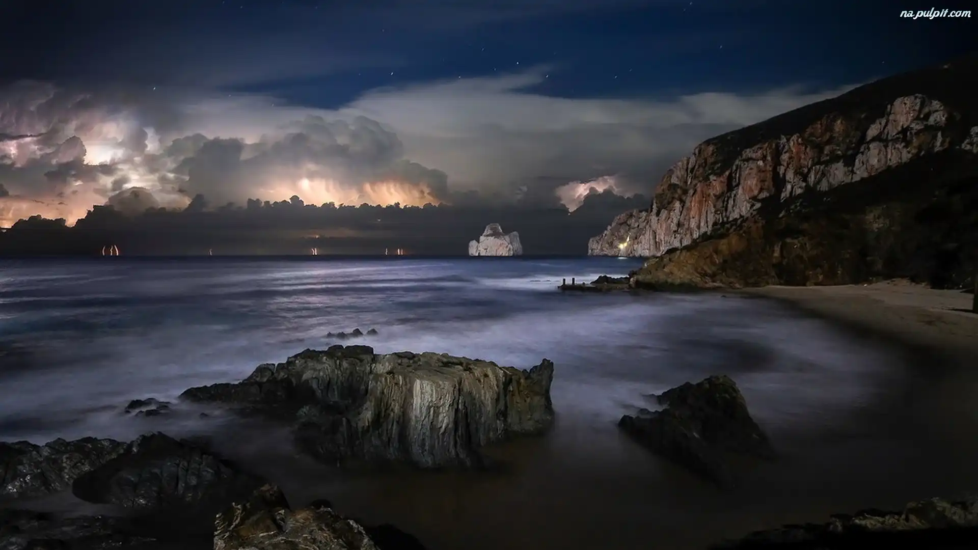 Światło, Chmury, Skały, Morze, Przebijające Na Pulpit