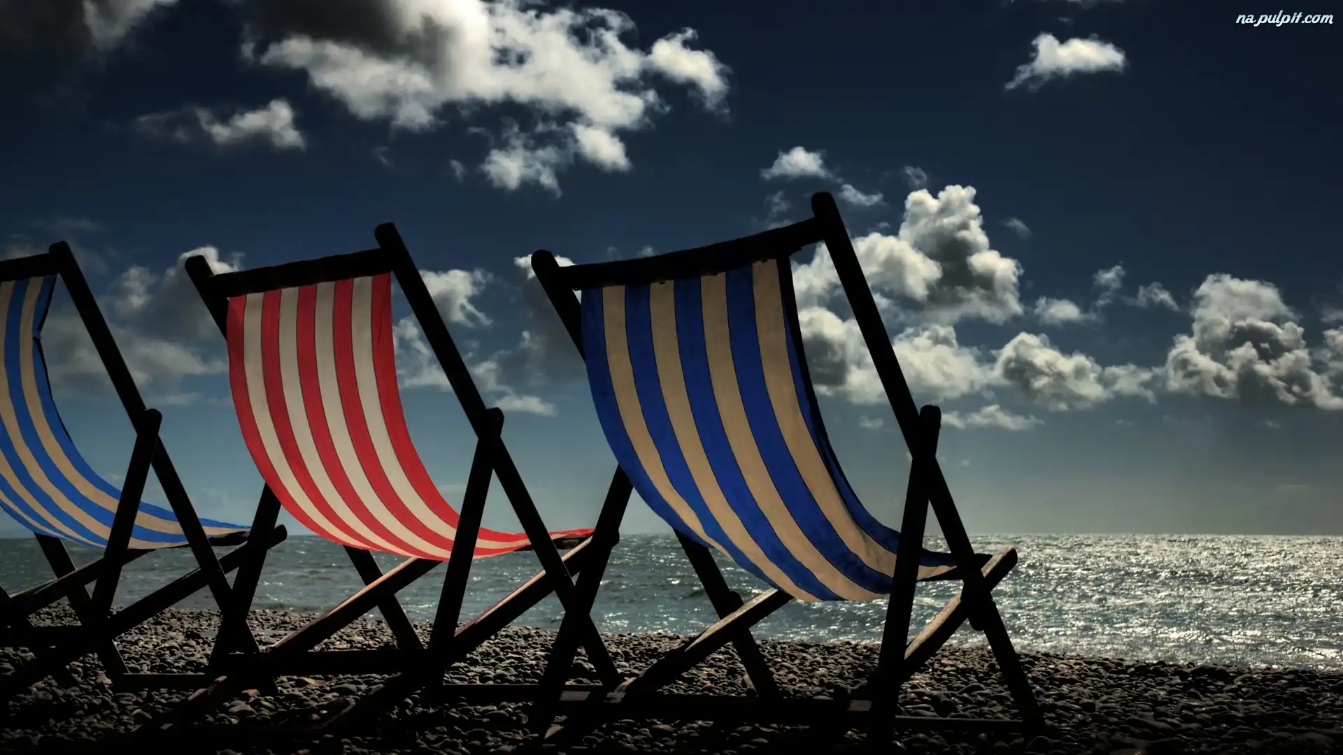 Morze, Leżaki, Wakacje, Plaża, Chmury, Trzy Na Pulpit