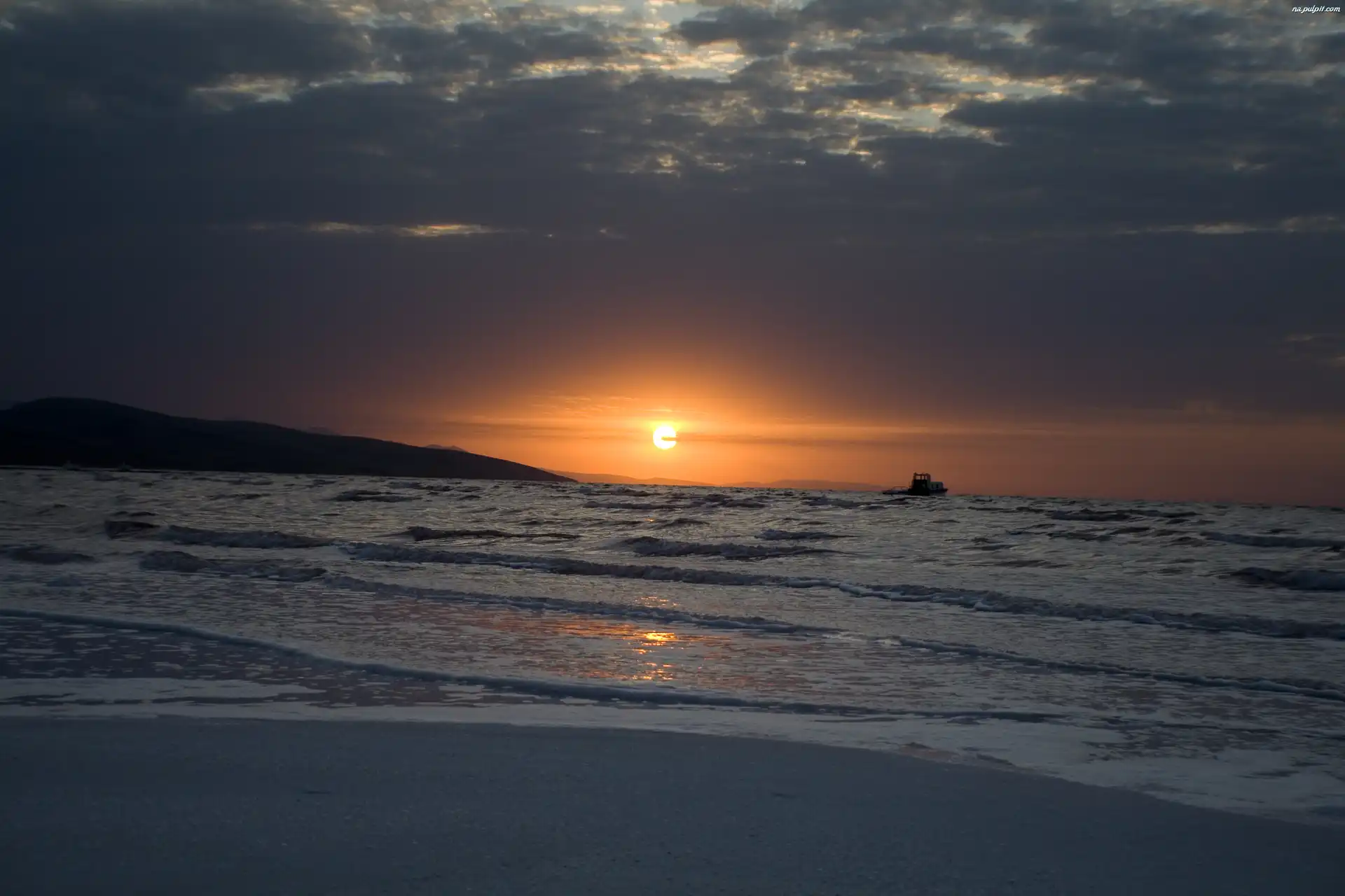 Morze, Zachód, Chmury, Słońca Na Pulpit