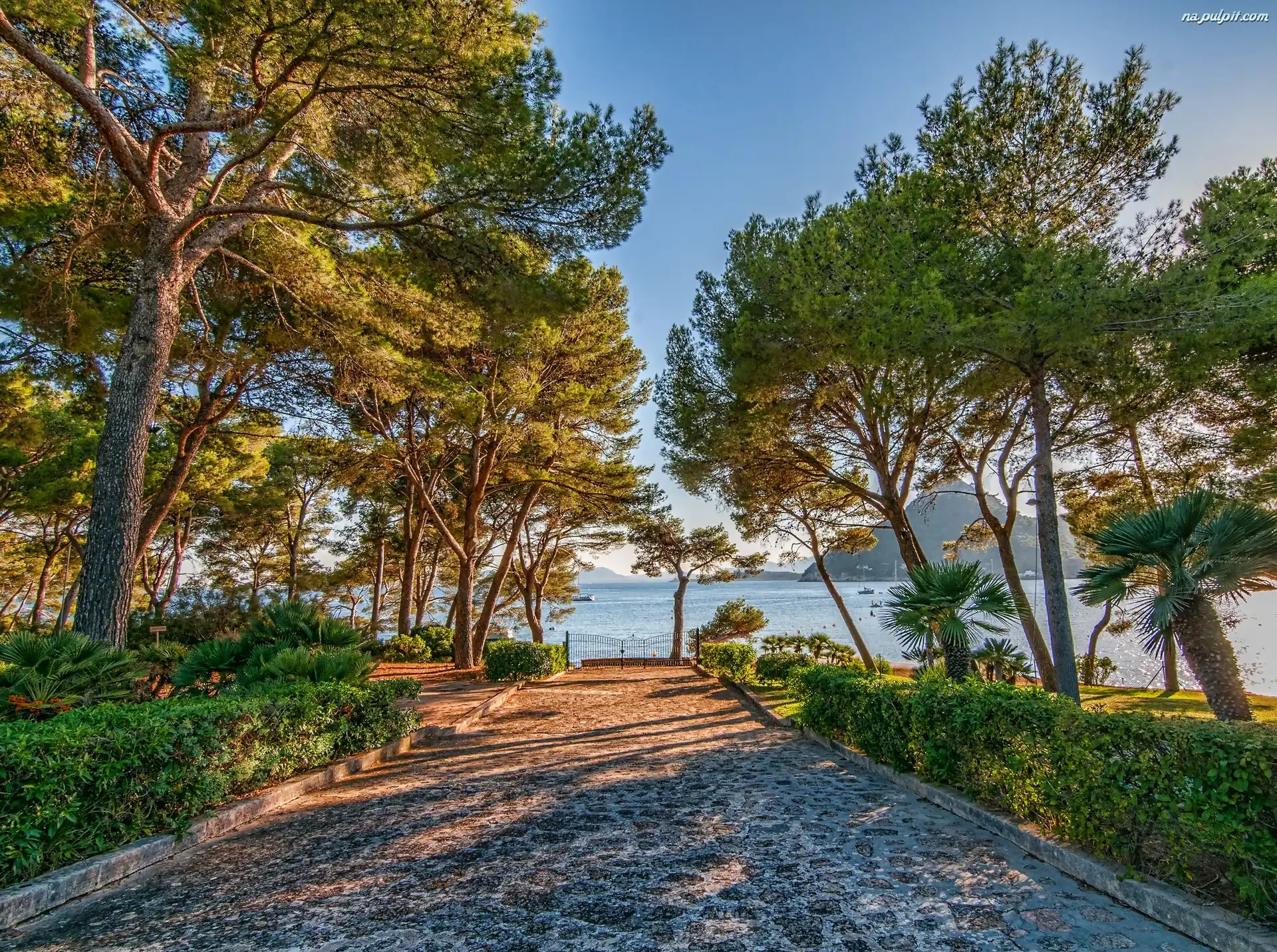 Morze, Drzewa, Deptak, Palmy Na Pulpit