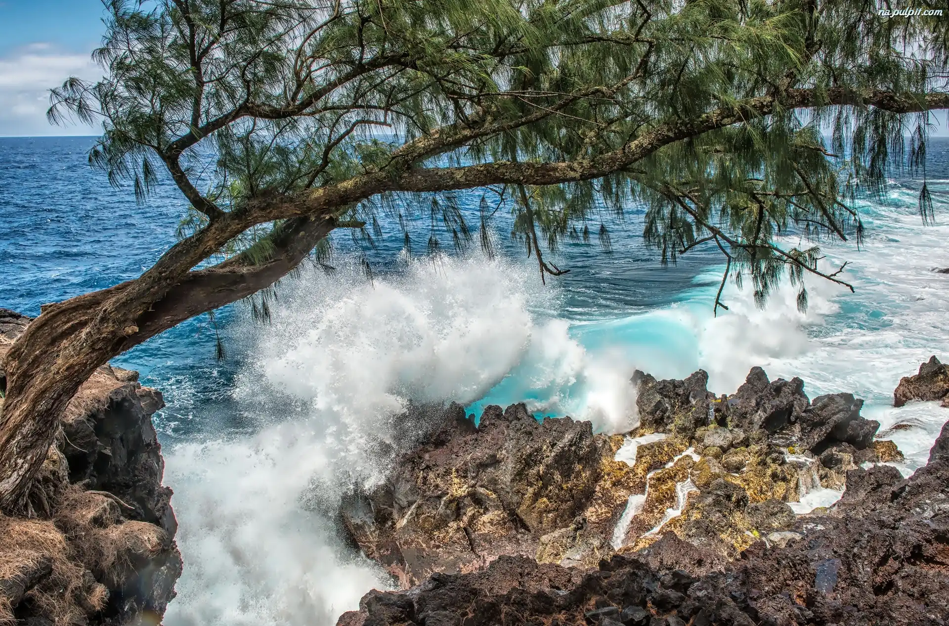 Drzewo, Morze, Skały Na Pulpit