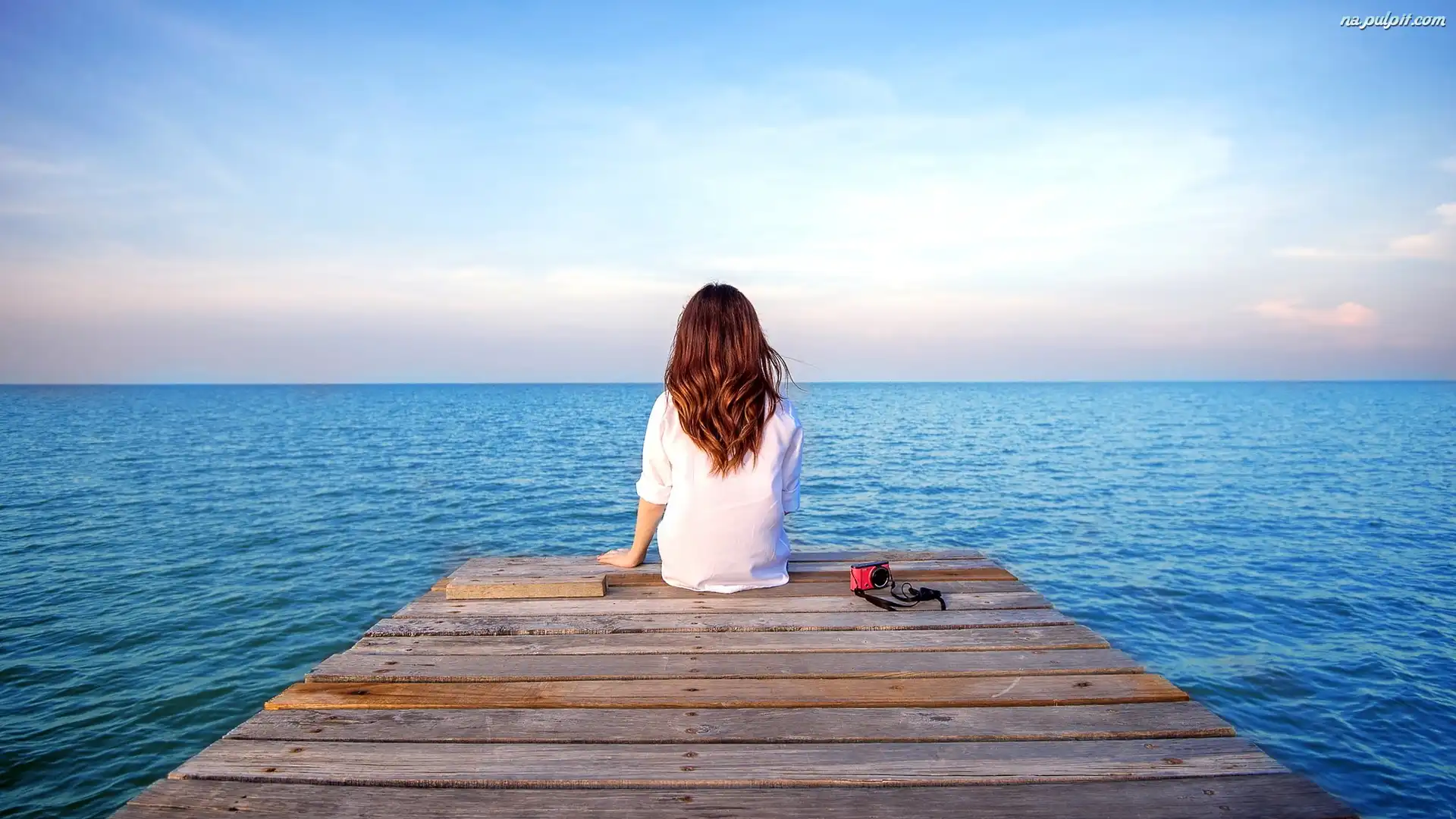 Morze, Aparat fotograficzny, Dziewczyna, Pomost