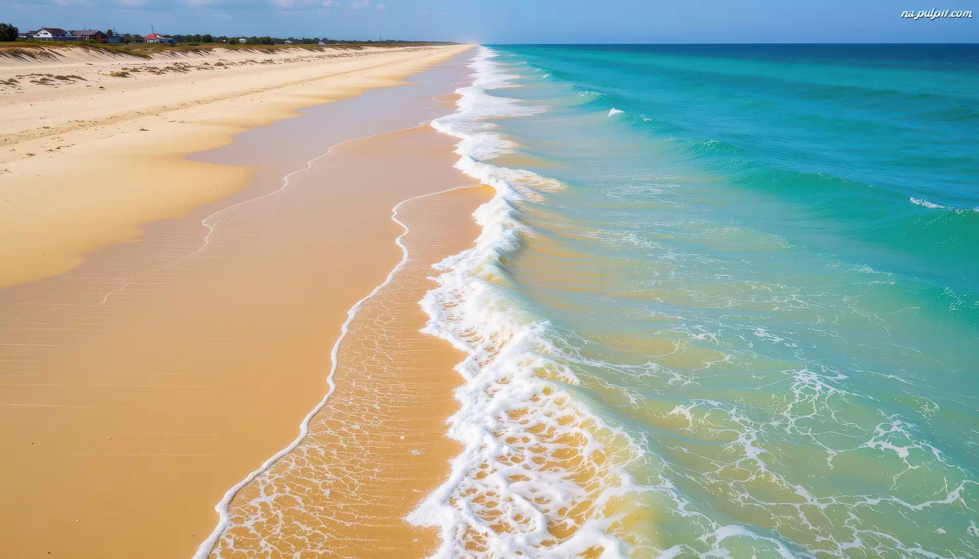 Plaża, Morze, Fale, Grafika AI Na Pulpit