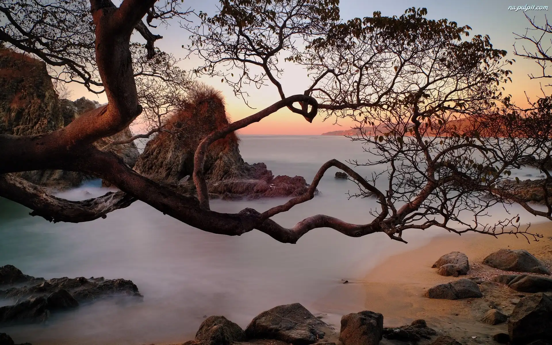 Gałęzie, Morze, Drzewo, Skały, Kamienie, Wybrzeże, Roślinność Na Pulpit