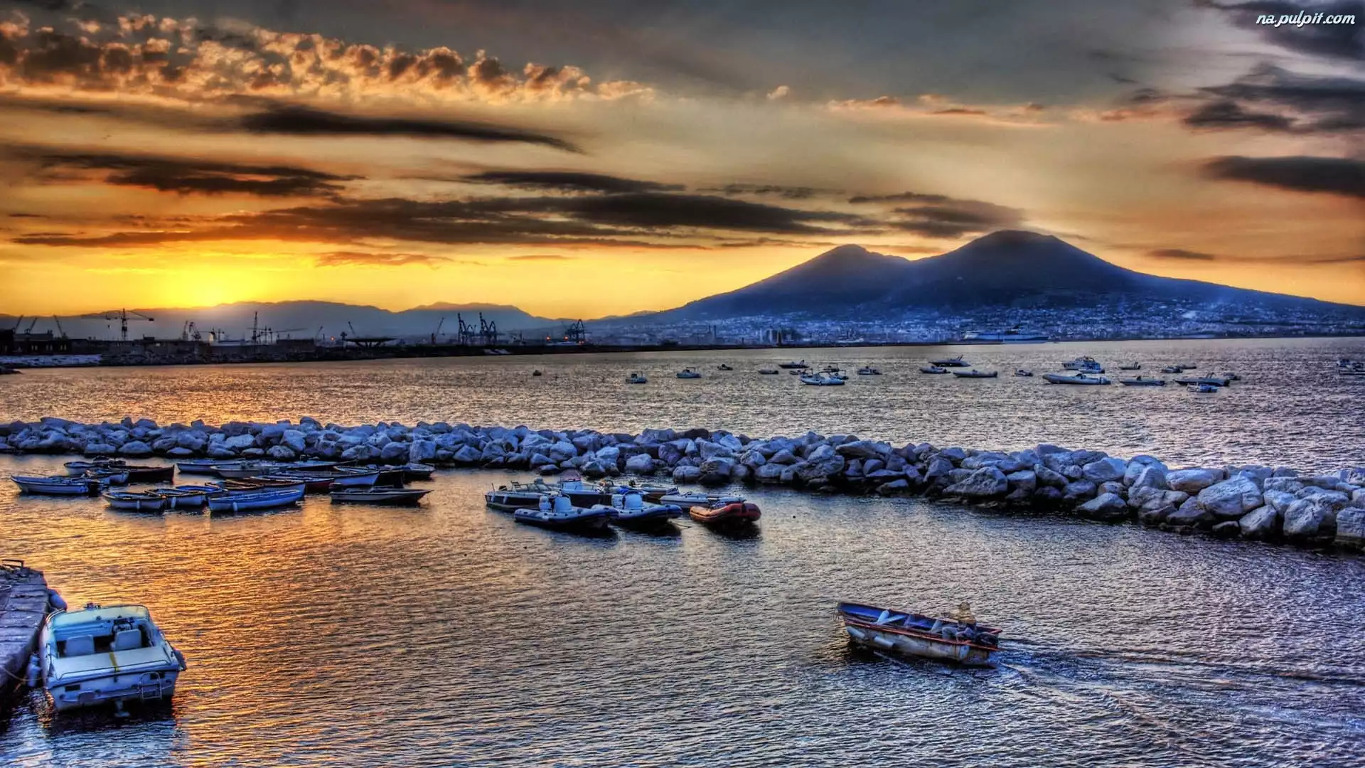 Morze, Przystań, Góry, Zachód Na Pulpit
