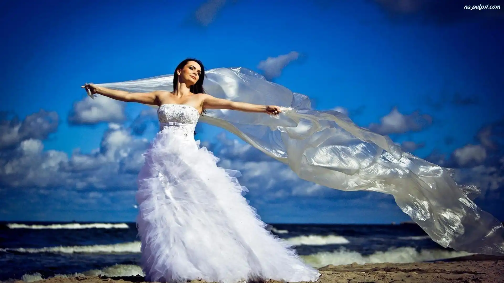 Morze, Biała, Kobieta, Suknia Na Pulpit