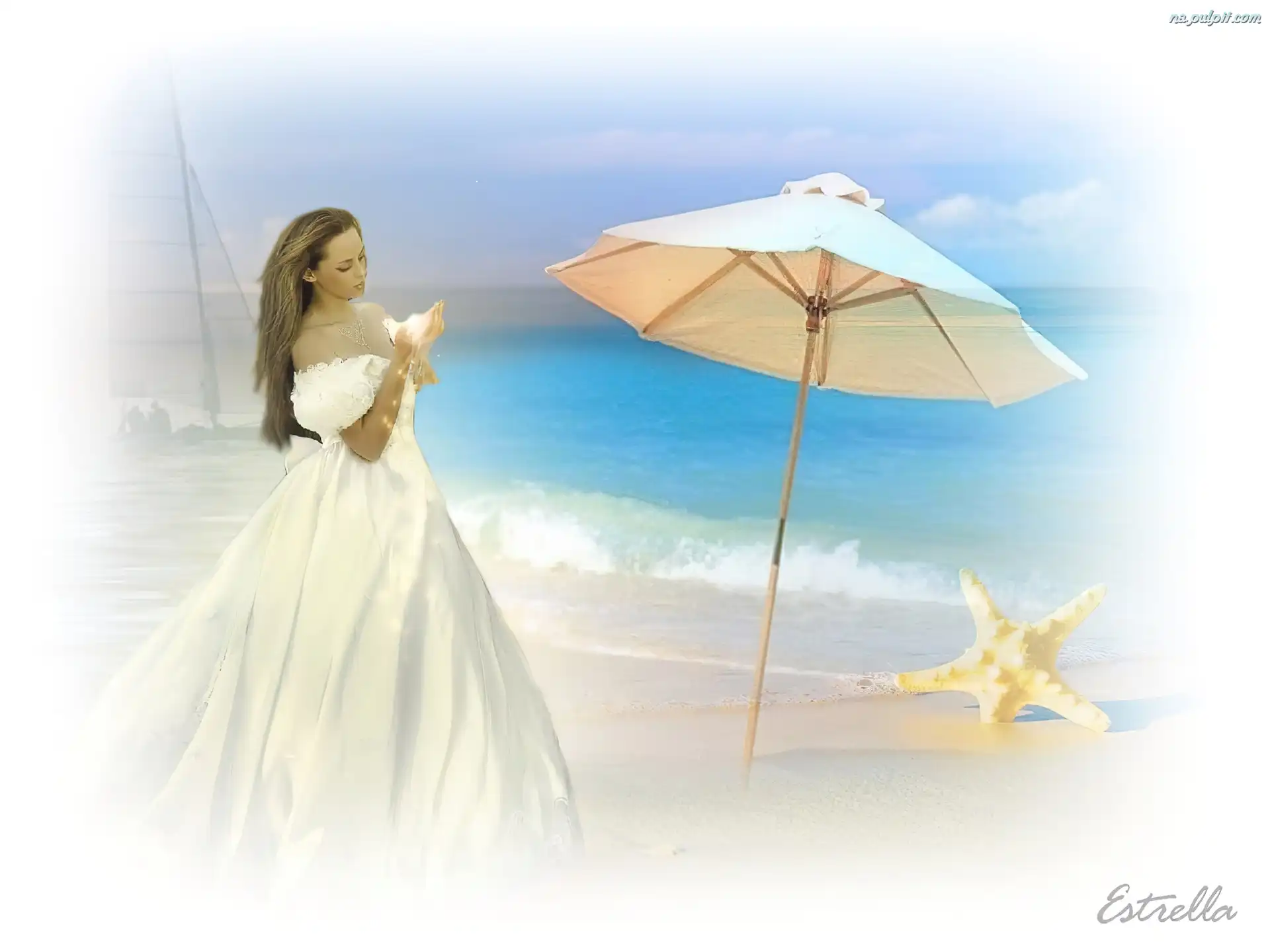 Morze, Parasol, Kobieta, Rozgwiazda Na Pulpit